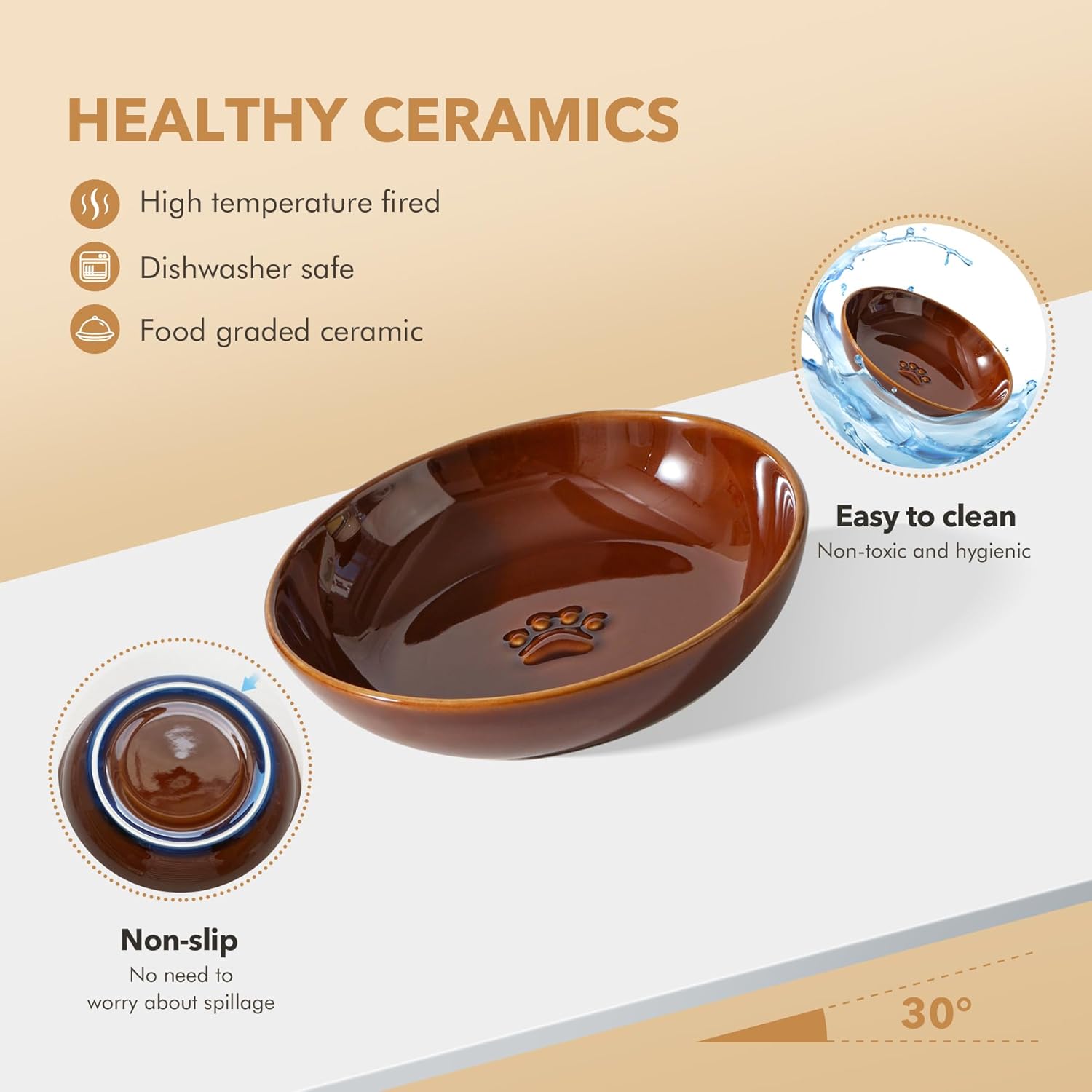 Elevated Ceramic Cat Bowl + Acacia Wood | Adjustable Height, Anti-Slip & Whisker ReliefThis elevated cat bowl set combines a solid acacia wood stand with a wide ceramic bowl. It helps your cat eat in a healthy posture.Ergonomic Height – Protects Neck & Spine The acacia wood stand raises the bowl to a comfortable height, so your cat no longer has to bend down low. This helps prevent spinal diseases, especially for senior cats.Wide Ceramic Bowl – No More Whisker Fatigue The bowl features an extra-wide opening. Your cat’s whiskers won’t touch the sides during eating, which eliminates whisker fatigue.High-Quality Ceramic – Dishwasher & Microwave Safe The bowl is made of glazed ceramic, which is easy to clean. It is dishwasher safe and also microwave safe for warming up wet food. 360° Non-Slip Base – Stays Firm The ceramic bowl has a full ring of non-slip padding on the bottom. It will not slide even on a 30-degree tilted surface. Perfect for cats that love to push their bowls around.Adjustable Acacia Stand – Two Height Options The stand comes with two sets of legs in different heights. You can easily change the height to fit kittens, adult cats, or seniors – no tools needed.Care tip: Wipe the acacia wood stand with a dry or slightly damp cloth; do not soak or put it in the dishwasher/microwave. The ceramic bowl is fully dishwasher and microwave safe.