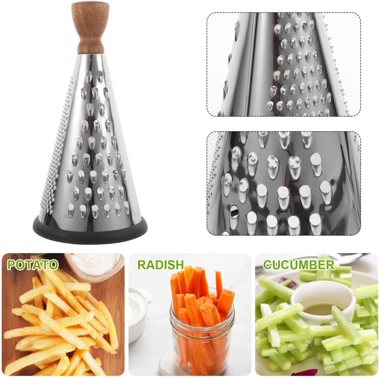Description Are you looking for a professional but Cheese Grater? Are you looking for a sturdy, tool that can do multiple jobs at the same time? If so, look no further! Our professional grater will surely meet your needs. Features - Color: Silver - Material:Stainless steel - Size: About 24.00X12.00X12.00cm/9.43X4.72X4.72in - Made of stainless steel which features with stability and durability, very hard and smooth for usage. - Widely in families, restaurants and hotels, sturdy and , not easy to deform. - Ergonomically designed handle is convenient for you to use for daily shaving, is safe to use, and will not hurt your hands. - Characteristic and with professional design. Simple and generous in design, smooth in lines. - This Multipurpose Grater can be for grating chocolate, cheese, lemon, melon and fruit.- Color: Silver.- Size: 24X12X12CM.Package Including1 x Cheese Grater