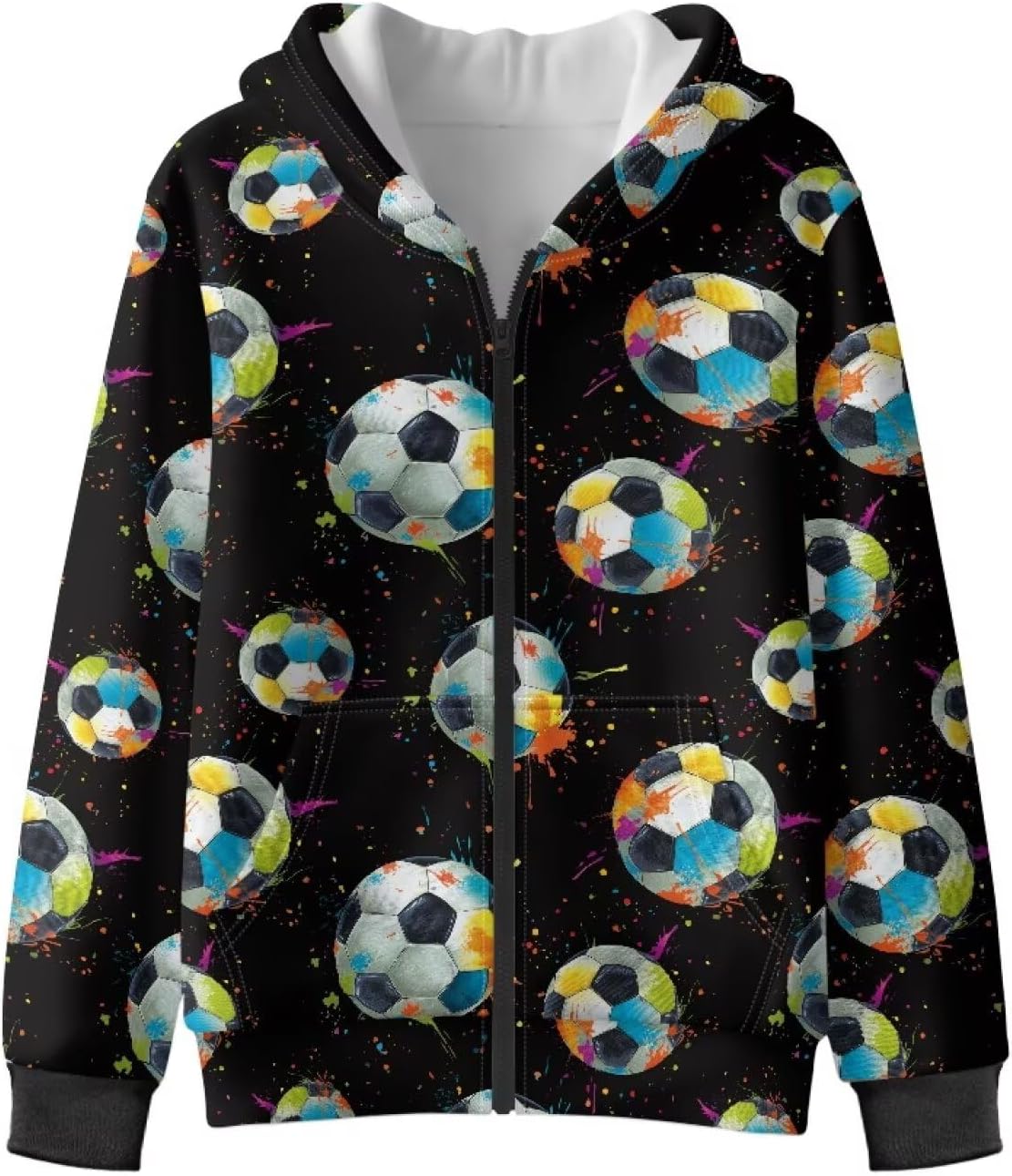 Find the Ideal Fit:Available in sizes S: 6-7 Years - Length: 22''(56cm); Bust: 17.7''(45cm); Sleeve: 22''(56cm) M: 8-10 Years - Length: 22.8''(58cm); Bust: 18.3''(46.5cm); Sleeve: 22.8''(58cm) L: 11-13 Years - Length: 23.6''(60cm); Bust: 18.9''(48cm); Sleeve: 23.6''(60cm) XL: 14-16 Years - Length: 24.4''(62cm); Bust: 19.5''(49.5cm); Sleeve: 24.4''(62cm). For a preferred looser fit, we recommend consulting our detailed size chart and considering selecting one size up to ensure optimal comfort and ease of movement. Softness and Warmth for All-Day Comfort: Crafted from a soft, breathable polyester, this hoodie provides exceptional comfort. Its comfortable and thick lining offers durability and effective warmth for cooler weather. It's also designed for easy care, being suitable for both hand washing and machine washing. Thoughtful Design for Practical Use: The classic full-front zipper allows for easy wear, and the long sleeves provide coverage. The convenient kangaroo pouch pocket adds practicality, offering a secure place for small essentials and helping to keep hands warm. Playful Patterns Kids Will Love: Adorned with a variety of charming and cool prints featuring motifs like cats, horses, puppies, capybaras, butterflies, mushrooms, and flowers. This stylish design pairs easily with jeans, sweatpants, or uniforms, making it a versatile choice for both daily wear and special occasions. Ready for Action and Relaxation: This versatile hoodie is suitable for a wide range of occasions. It's a great layer for being at home, attending school, gatherings, sports activities, travel, running, hiking, and camping. It's an ideal jacket for various activities across spring, autumn, and winter seasons.