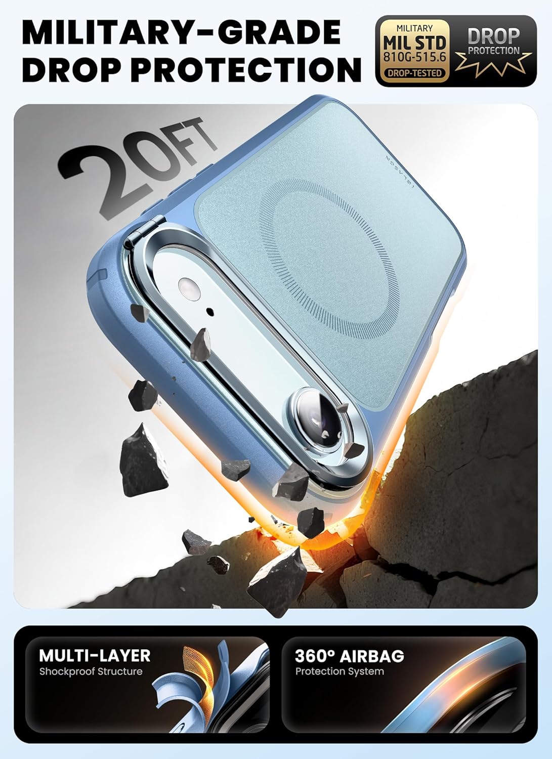 | Additional Features | 360 Degree Protection, Built-in Stand, Built-in Tempered Glass Screen Protector, Compatible with MagSafe, Shock-Absorbent |