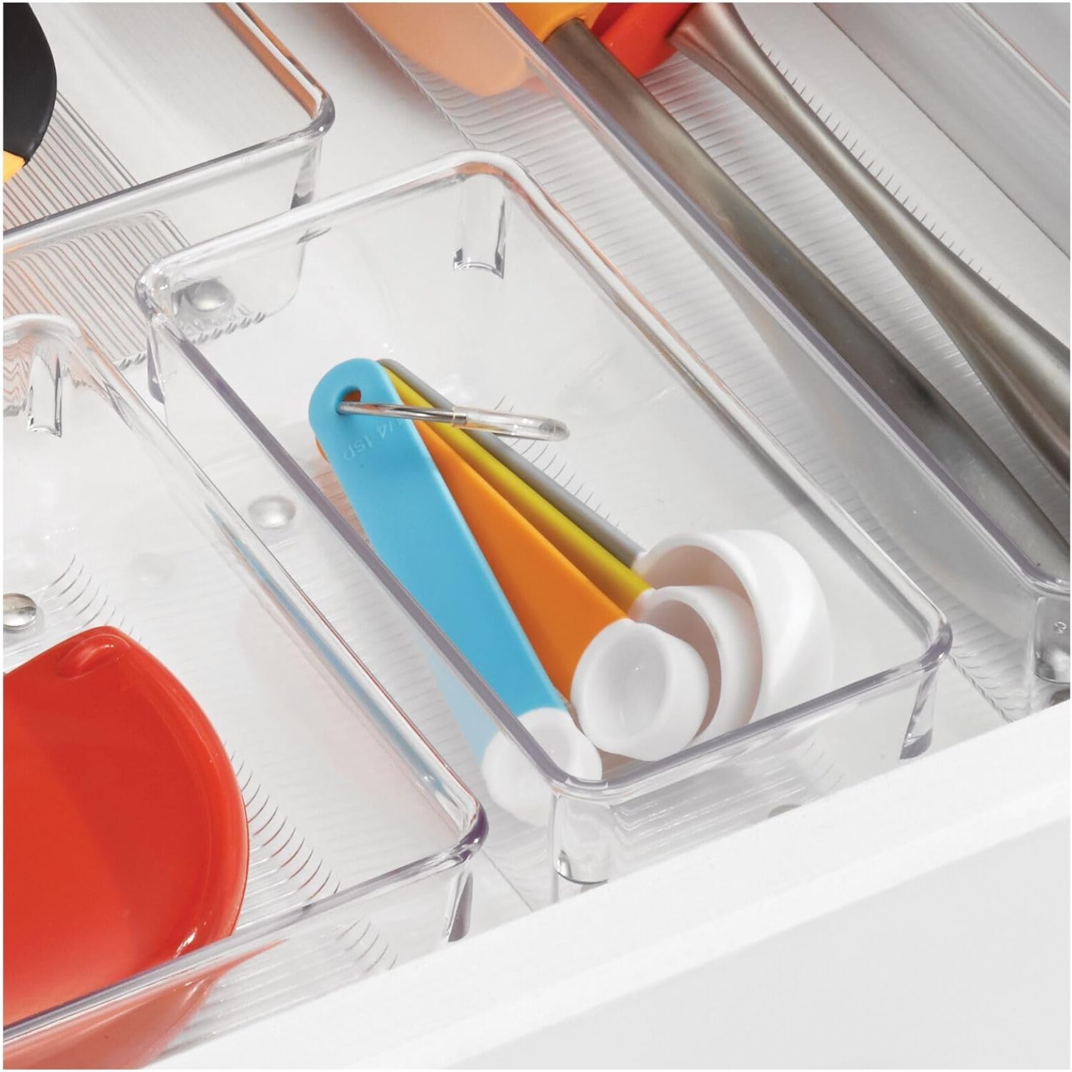 Our iDesign Linus Drawer Organizer Set tackles your toughest drawers by providing a sleek space to store common household essentials-- from small gadgets in the kitchen to cosmetics in the bathroom--or anywhere else that needs organizing. With iDesign, you can live simply every day.