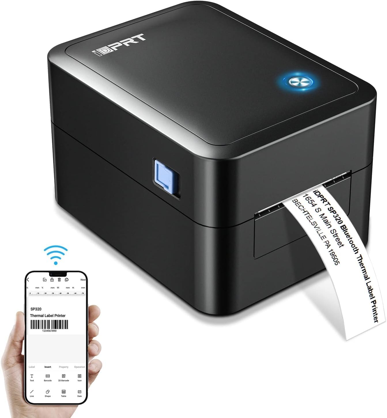 iDPRT Label Maker with 600pcs Labels(2 Rolls of 300pcs) - Thermal Barcode Printer with No Bound Consumables, Bluetooth & USB Connection, 140pcs/min Speed, Customizable App, Supports Various Sized Labels, Label Printer for Small Business