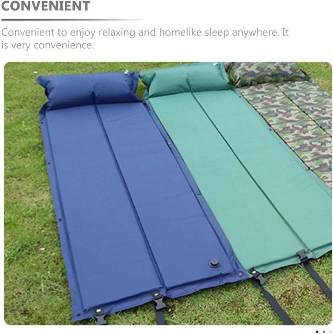 Package Include 1 x Sleeping Pad Characteristics -Size:180.00X55.00X2.50cm/70.74X21.61X0.98in self inflating camping mat -Material:PVC and sponge inflatable sleeping pad for camping -Color:Assorted Color sleeping pad -Excellent production technology makes it comfortable and , and sleeping mats. -With terrific craftsmanship and light weight, bring you satisfied using experience inflating sleeping pad for camping. -Adoption of simple and convenient design, this product also can be used for a long time camping sleeping mat. -Made of and , this sleeping mat is very and sleeping mats for camping. -One-piece pillow and sleeping pad are more convenient. Portable with storage bag, suitable for outdoor camping wear-resistant sleeping pad.Goods Descriptionconvenient camping pad An inflatable mattress that lets you sleep comfortably in any situation.wear-resistant sleeping pad Portable with storage bag, suitable for outdoor camping.camping sleeping mat Adoption of simple and convenient design, this product also can be used for a long time.camping sleeping pad One-piece pillow and sleeping pad are more convenient