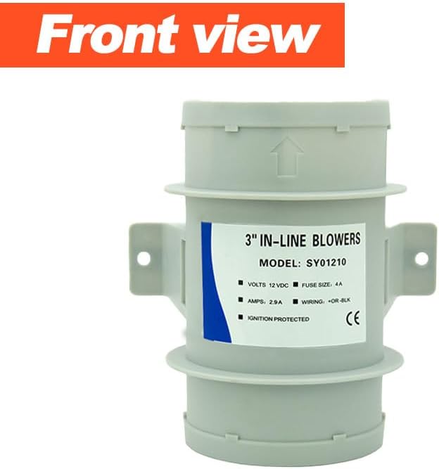 Features:Output Hose: 4"(102mm)Working Voltage: 12 VCapability: 235CFMAMP Draw: 4 AmpWarranty: 1 Year This In-Line Blower provides outstanding ventilation airflow for areas such as engine compartments, galleys, bilges, and heads. In-line design and the 5-blade fan maximizes airflow and efficiency. The blade sweep and pitch are engineered for a high lift coefficient, which results in increased airflow speed for optimized ventilation. No other bilge blowers in the industry provide such powerful system output at such low power input in a compact size. System airflow exceeds older-style in-line blowers by as much as 25 percent. This blower is marine ignition protected and has built-in mounting feet that permit easy vertical or horizontal installation. This 12-volt blower is intended for use with 3-inch interior diameter ventilation hose. It installs with #10 fasteners. Typical Applications:Boats bilge ventilationEngine compartmentsGalleys and headsRace cars and helmet ventilation;Bus ventilation (engine and bathroom fumes)Tanning boothsPrison van ventilation (cooling, air-freshening)Blow-up signs and mascotsBuilding ventilationPackage Including:1× In Line BlowerWe Provide 100% Perfect Customer Service, If There is Any Question, Please Contact us.