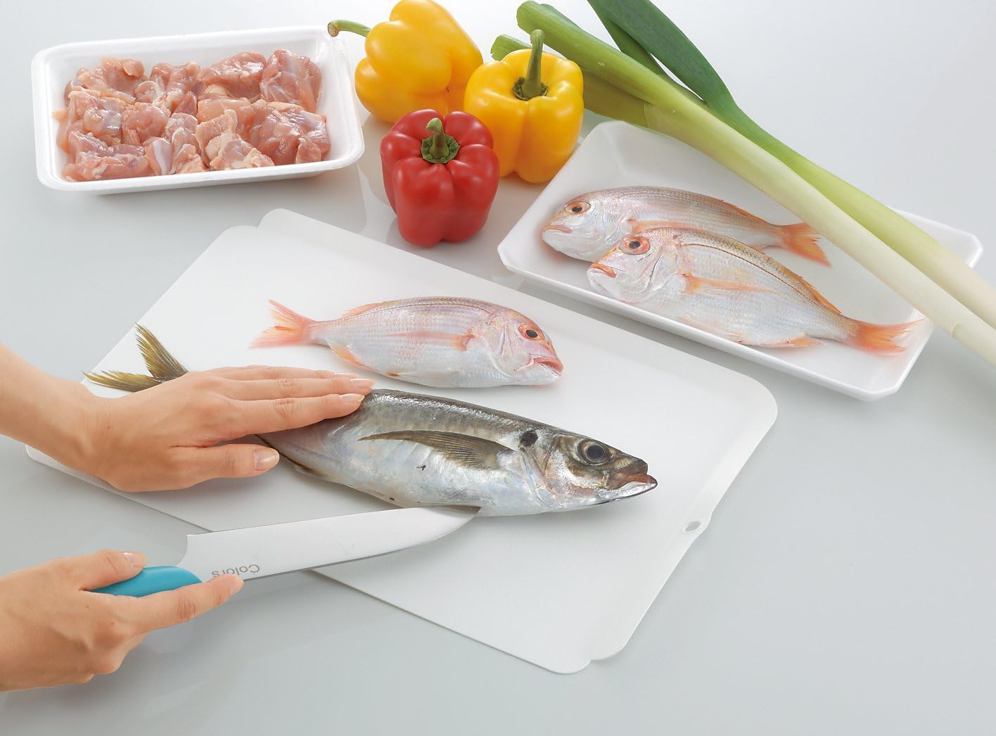 Serving Cutting Board Set [Features] This 4-piece set includes 3 cutting boards that can be used separately. Can be used cleanly by separating vegetables, meat, or fish. Convenient for cutting a lot of ingredients. The edge of the cutting board has a stopper to prevent food from rolling off. By using a mini cutting board, you can easily transfer fine chopped ingredients.