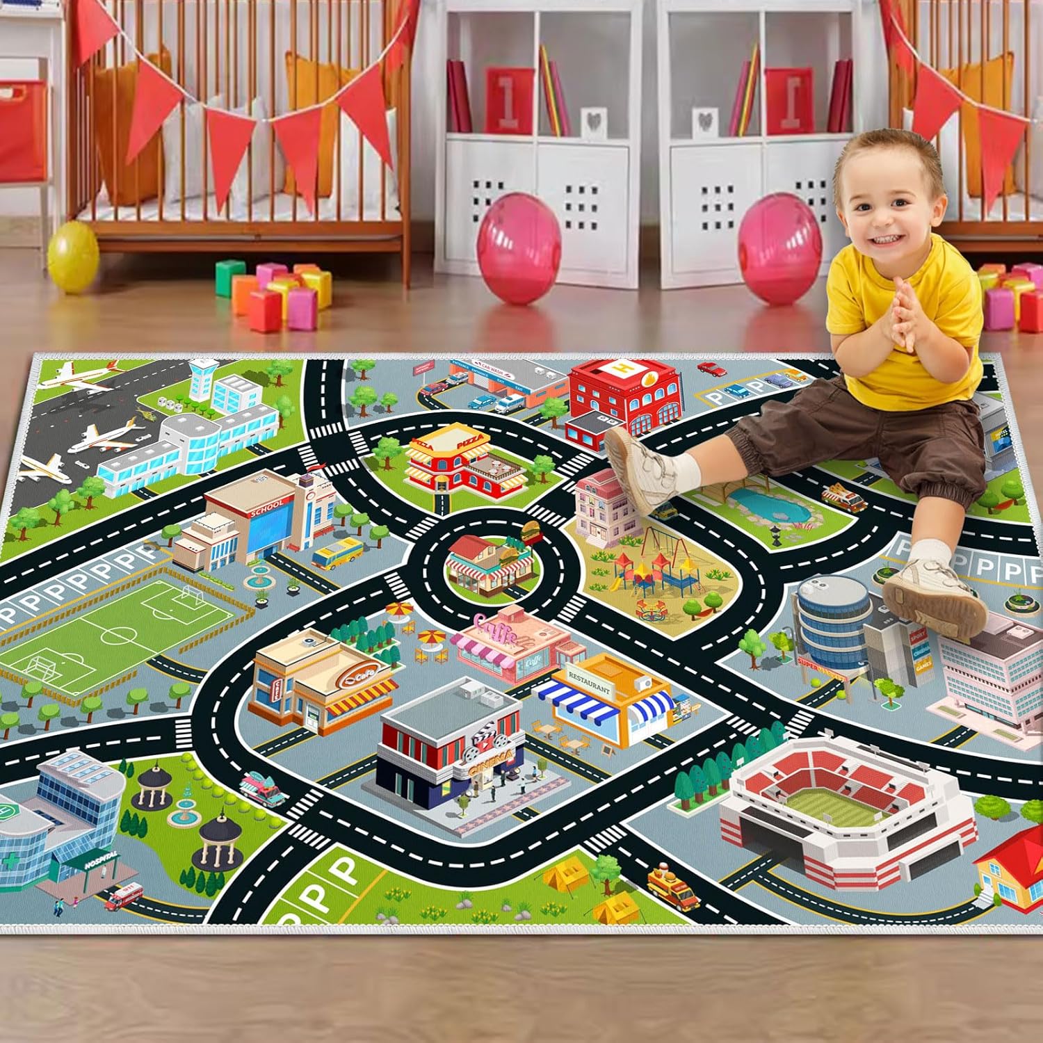 Kids Car Rug, Carpet Playmat for Toy Cars and Train, Road Traffic Play Mat for Kids, Play Area Rug with Non-Slip Backing, Ideal Gift for Children's Room playroom(4×6ft/47×71in)