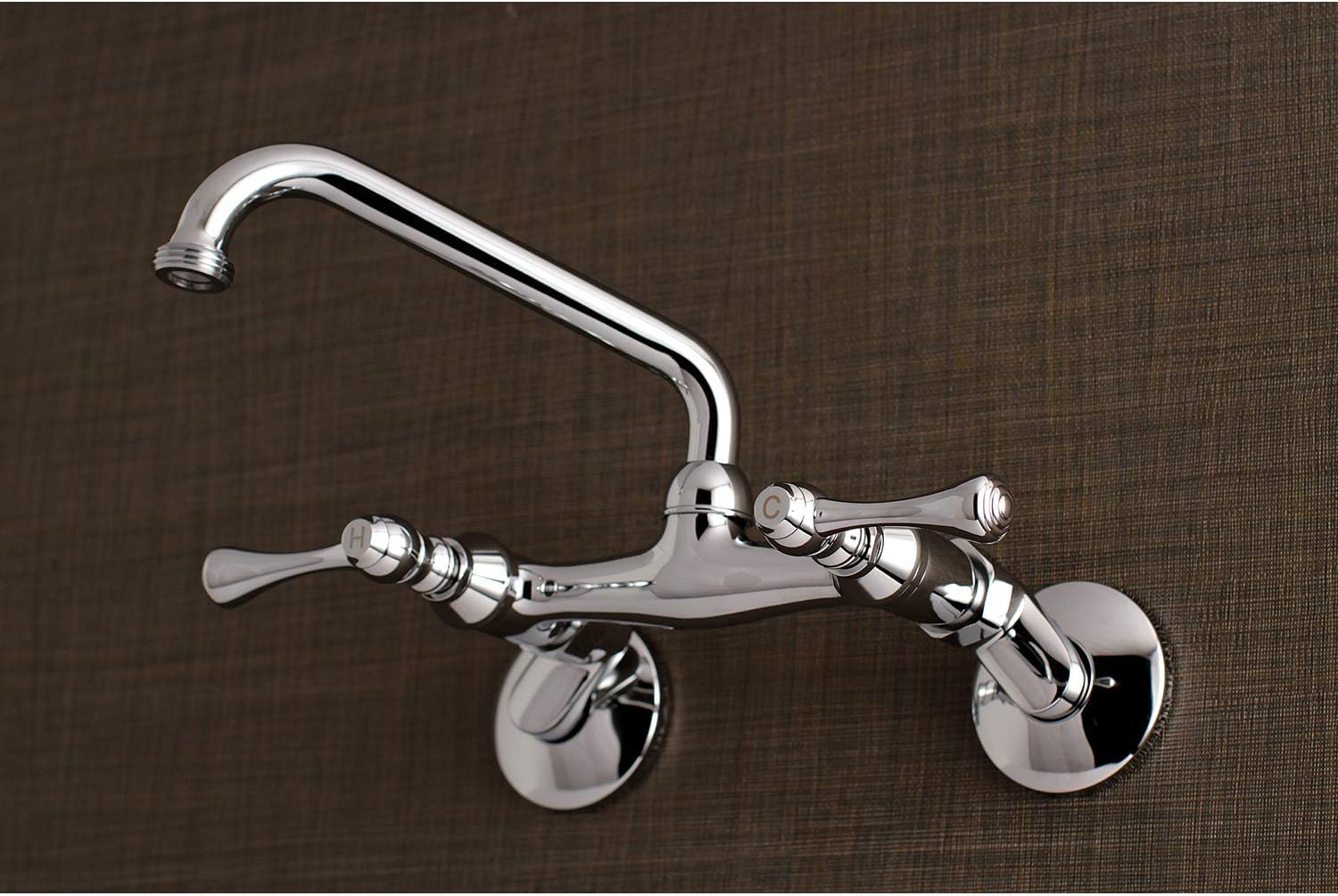Designed to intertwine exceptional soundness with magnificent grandeur, the Kingston Collection will transform your household fixtures into those only someone of royalty would use. Vessel faucets are designed to handle the extra clearance needed for pairing with a vessel sink. The Kingston 6-Inch Adjustable Center Wall Mount Laundry Faucet and its featured sturdy brass construction, drip-free ceramic disc cartridge for longevity, and premium polished chrome finish are guaranteed to glamorize your home's ensemble for years to come. A maximum water flow rate of 4 GPM will aid in water conservation efforts, as well. Additionally, the dual handles allow for precise temperature control while enhancing the theme, meeting ADA guidelines. Brilliantly crafted and designed, this collection is an excellent go-to for any homeowner wanting to replicate the serine and exquisite auras of a professional spa or kitchen.