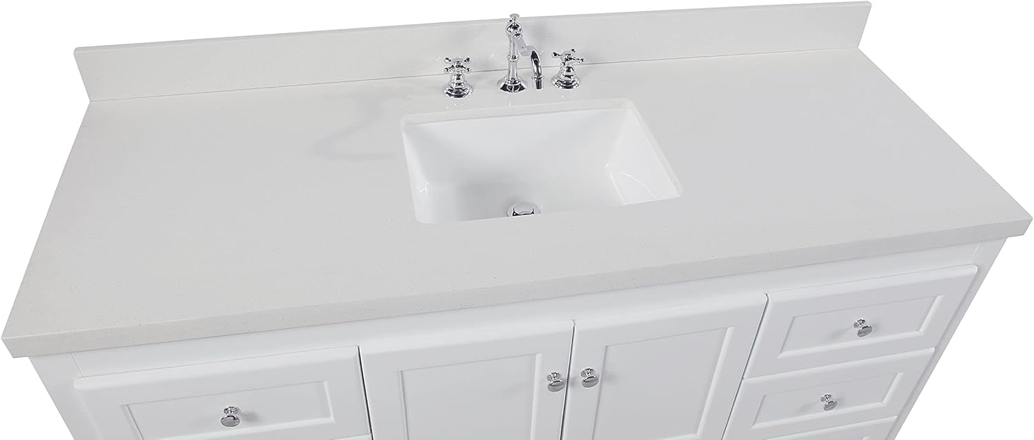Curbside delivery only. Please provide your daytime phone number for delivery purposes. Shipping is included to any of the 48 continental United States, not including islands, remote areas, or addresses that the carriers deem inaccessible. These areas may not be serviced or may be subject to additional delivery fees. Kitchen Bath Collection specializes in producing designer bathroom vanities, handmade by skilled artisans using quality materials and high-end construction methods.The Abbey: quality, style, and utility in one. This fully assembled bathroom vanity set features the pictured high-end furniture-grade construction cabinet, stunning countertop, and ceramic sink(s). Pictured faucet/pop-up drain not included.Dimensions: 60 inches wide x 23 inches deep x 35 inches high