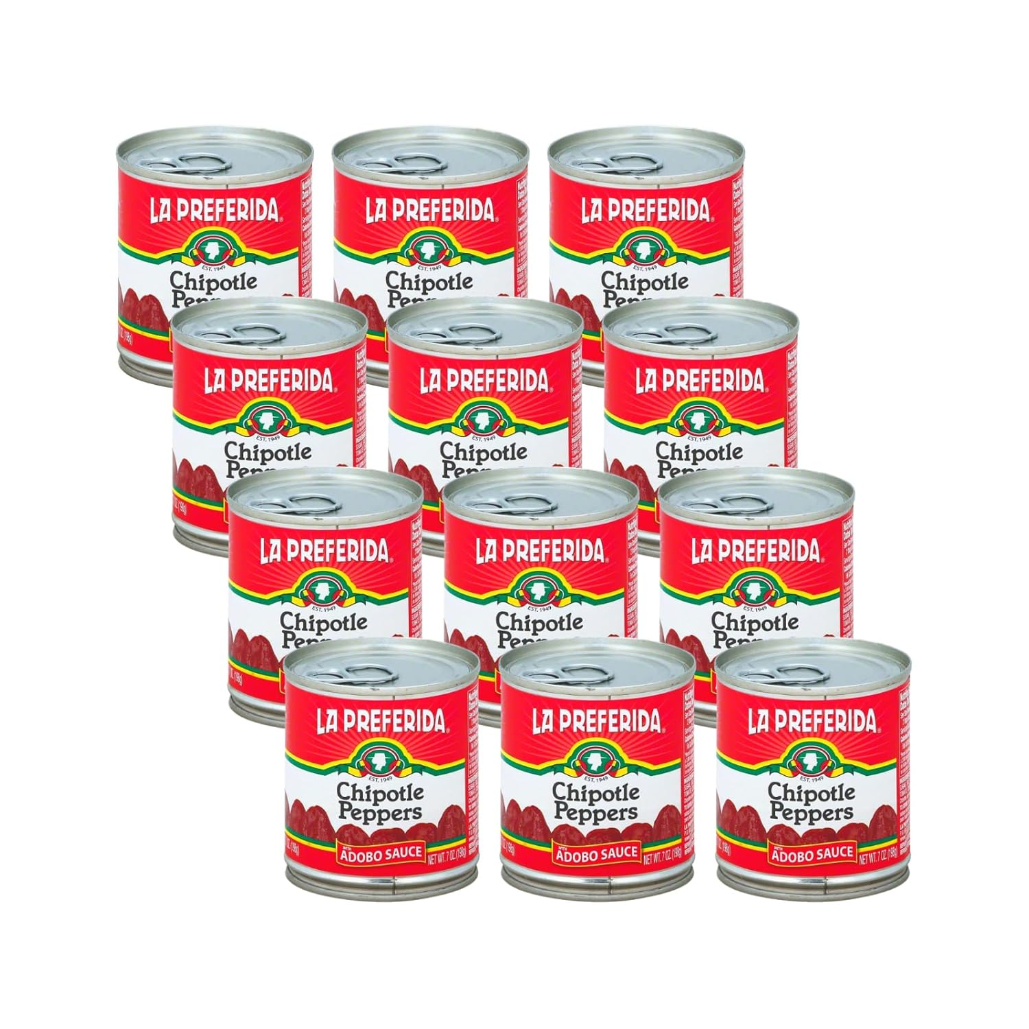 La preferida whole chipotle peppers are made by smoking jalapeño peppers in a hot red adobo sauce, for a smoky and spicy chipotle pepper. One 7 oz. Jar of chipotle peppers is kosher and produced with tomato puree, onions, and paprika, for a traditional mexican pepper with only 20 calories per serving. country of origin : united states of america is kosher : yes size : 7 oz pack of : 24 selling unit : case ingredients chipotle peppers;canola oil;onions;paprika and garlic;salt;sugar;tomato puree;vinegar keywords : adobo;cooking;mexican;smoky;spicy;traditional