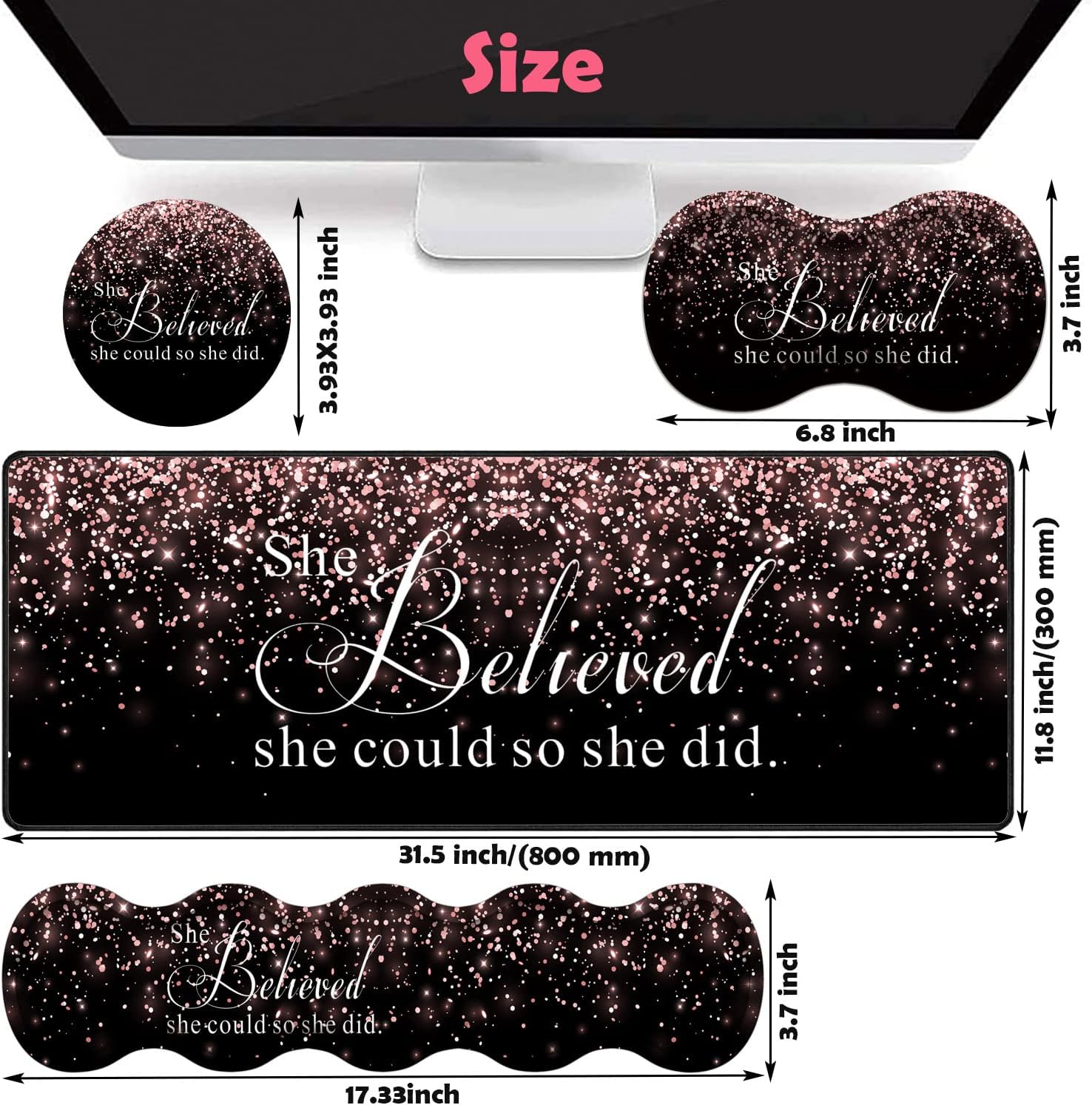 The ergonomic suit design is the perfect combination of office accessories, adding more elegant and lovely atmosphere to your work life. unisex. Perfect for study, work and everyday use.▲Material: Non-slip natural rubber base and Lycra silk surface▲Product Specifications:Dimensions: Mouse Pad: 31.5 x 11.8 inchesKeyboard Wrist Rest: 17.32×3.6 inchesMouse wrist rest: 6.81×3.66 inchesCoaster: 3.93 x 3.93 x 0.1 inchesMini Hook: 0.78 x 1.18 inches▲Packing:1 x Mouse Pad + 1 x Keyboard Wrist Rest + 1 x Mouse Wrist Rest + 1 x Coaster + 2 x Mini Hook Any patterns on our mouse pads are carefully selected to ensure a great look. If you have any questions during use, please contact us, we will serve you wholeheartedly!