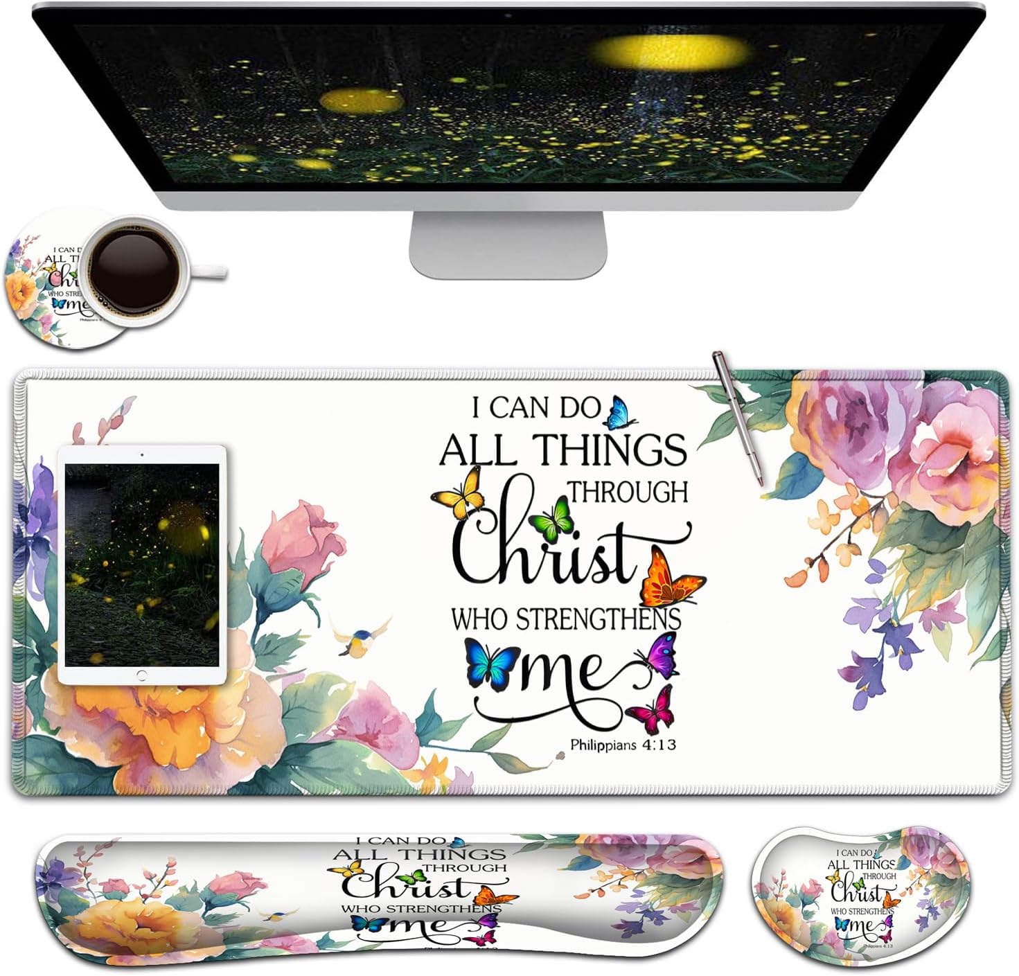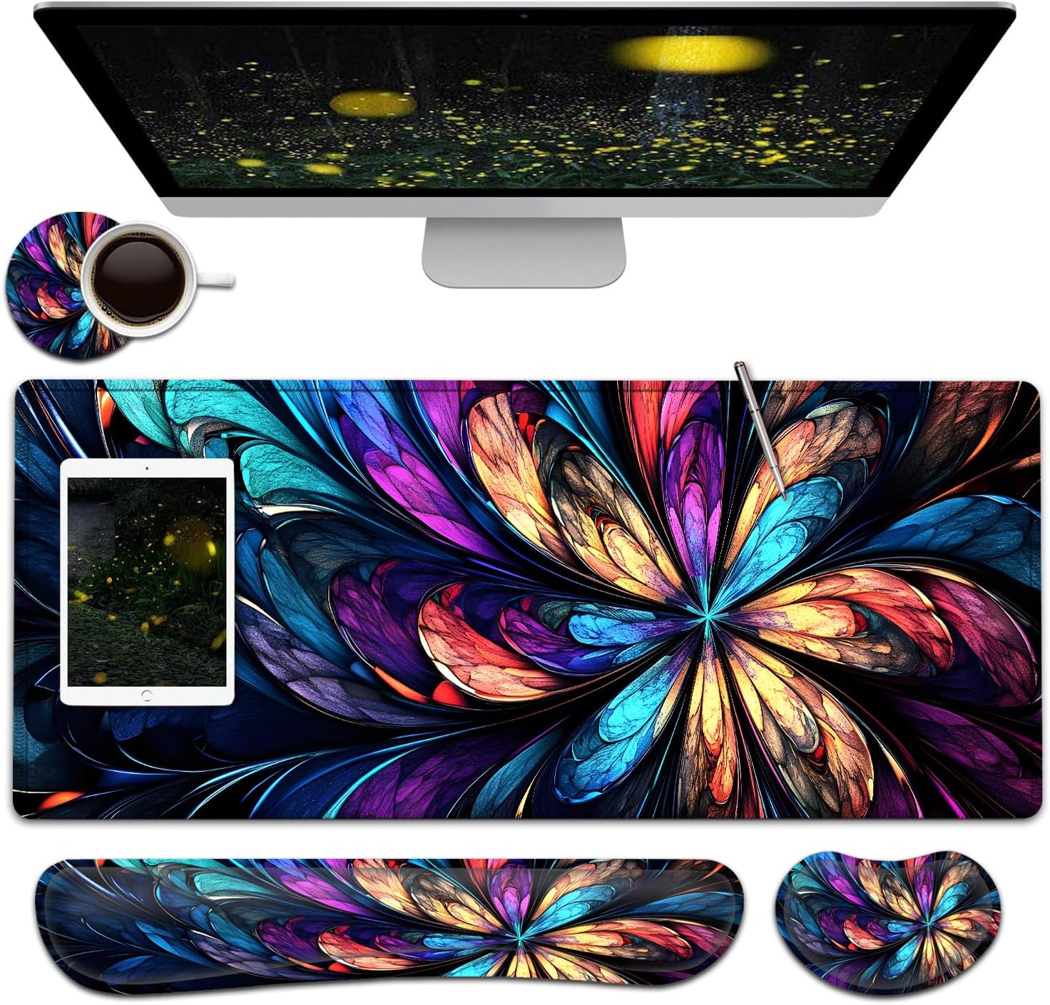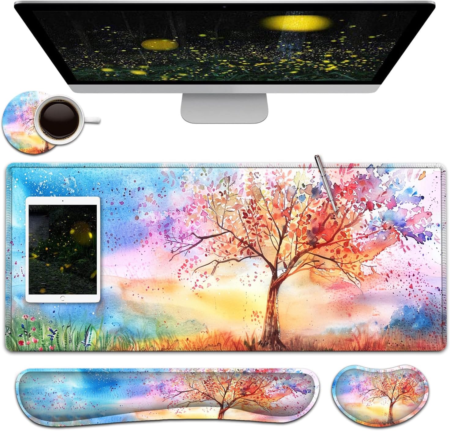 【Large and Extended Size】The size of this XXL large mouse pad is 31.5×11.8 inch,which is big enough to fit your full-sized keyboard, mouse, laptop,or other item on the desk,providing more space for professional gaming or office work. Besides,you can also use this extended mouse pad as a desk pad,writing pad,platform protection mat. 【Ergonomic Wrist Rest Design:】Using soft and breathable fabric and comfortable memory foam design, rest the wrist, raise the wrist to a suitable position, and reduce the pain of the wrist. The ergonomic height eliminates the friction between the wrist and the desktop, preventing unnecessary wrist fatigue and injury.【Ultra Smooth Surface & Stitched Edges】This extended mouse pad is easy to be cleaned by wet rag or washed, Covered by the superfine fabric, the mouse pad has a soft and smooth surface, helps you track the mouse fast and accurately, maximally enhances your gaming/working experience.Double stitched edges protect the mouse mat from wear. Urable enough for long time using. No deformation Much more durable than other mouse pads.【Non-slip Rubber Base】The Soft and dense non-slip natural rubber base can hold the table firmly. High-quality soft materials bring you comfort and mouse control, Just immerse into your work or games without worrying about the annoying mouse pad movement.【After-sales Guarantee】 All our products have undergone rigorous quality testing. If the product you received is damaged, please feel free to contact us and provide you with a satisfactory solution. So, what are you waiting for? Add to your shopping cart now!