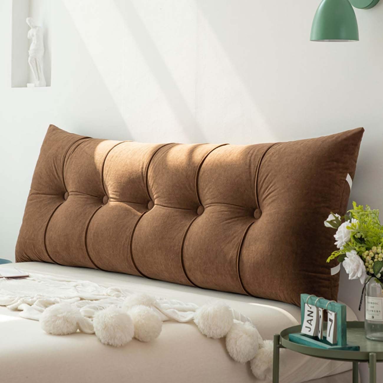 Headboard cushion Covered with ultra soft, with a soft and comfortable touch, it fits snugly and silky, providing a warm and caring experience.Pearl cotton filling has good elasticity, fluffy and comfortable, and is not easy to collapse or deform after long-term use.Button and zipper design, easy to disassemble and install.Washing instructions, room temperature washing,hanging to dry,can not be bleached,can not dry clean, Pillow core can not wash.Size:24x20x7.8in,31x20x7.8in,39x20x7.8in, 47x20x7.8in,59x20x7.8in,71x20x7.8in,78x20x7.8in.Handmade - Please allow for an error of 1-2cm.Can Not Be Under The Hard Sunshine Directly,Do Not Wash The Pillow core.After Received The Item,Please Place A Few Days To Return To Normal Because Of Vacuum Packaging