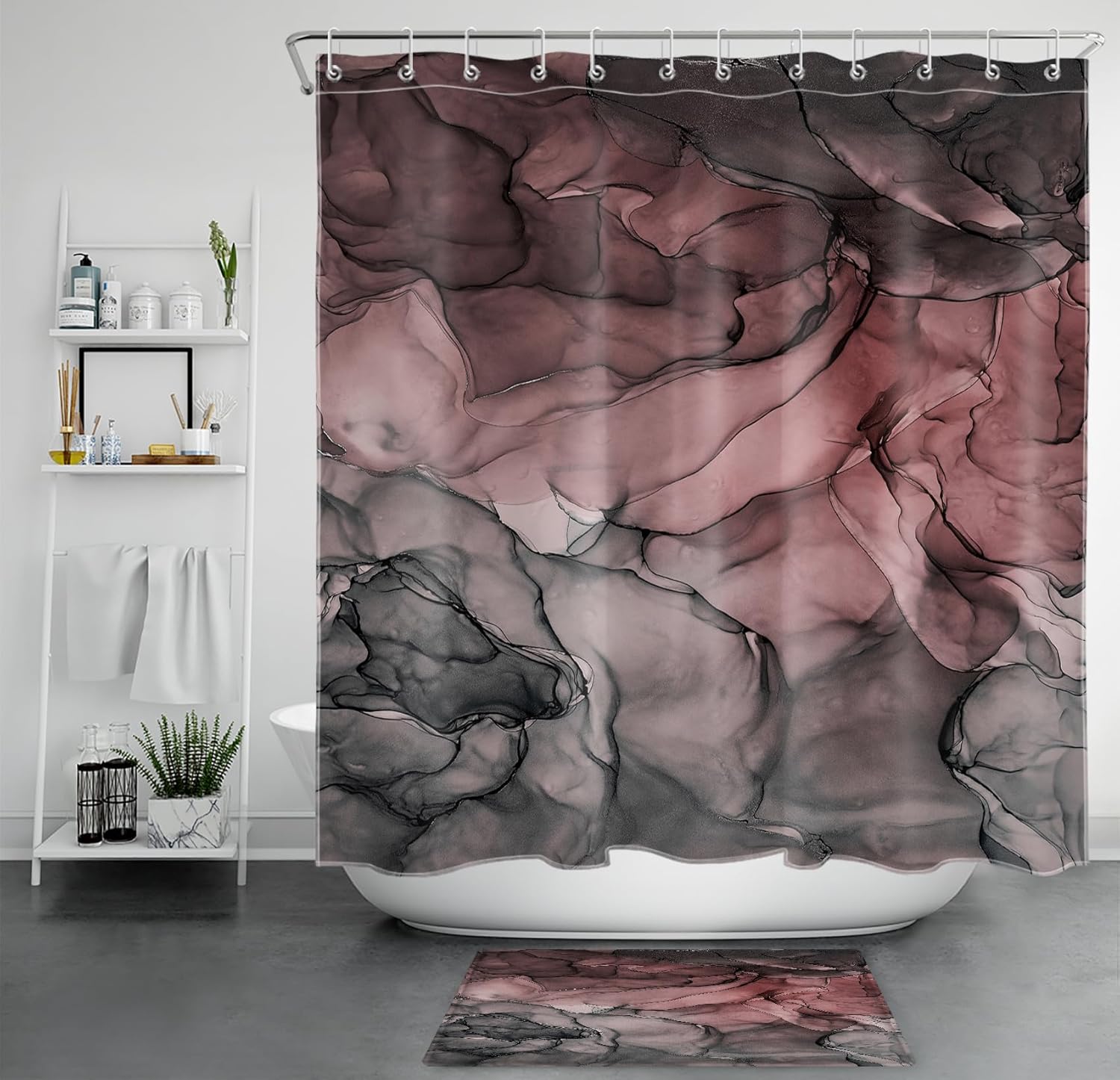 | Pattern | pink and black marble texture shower curtain |