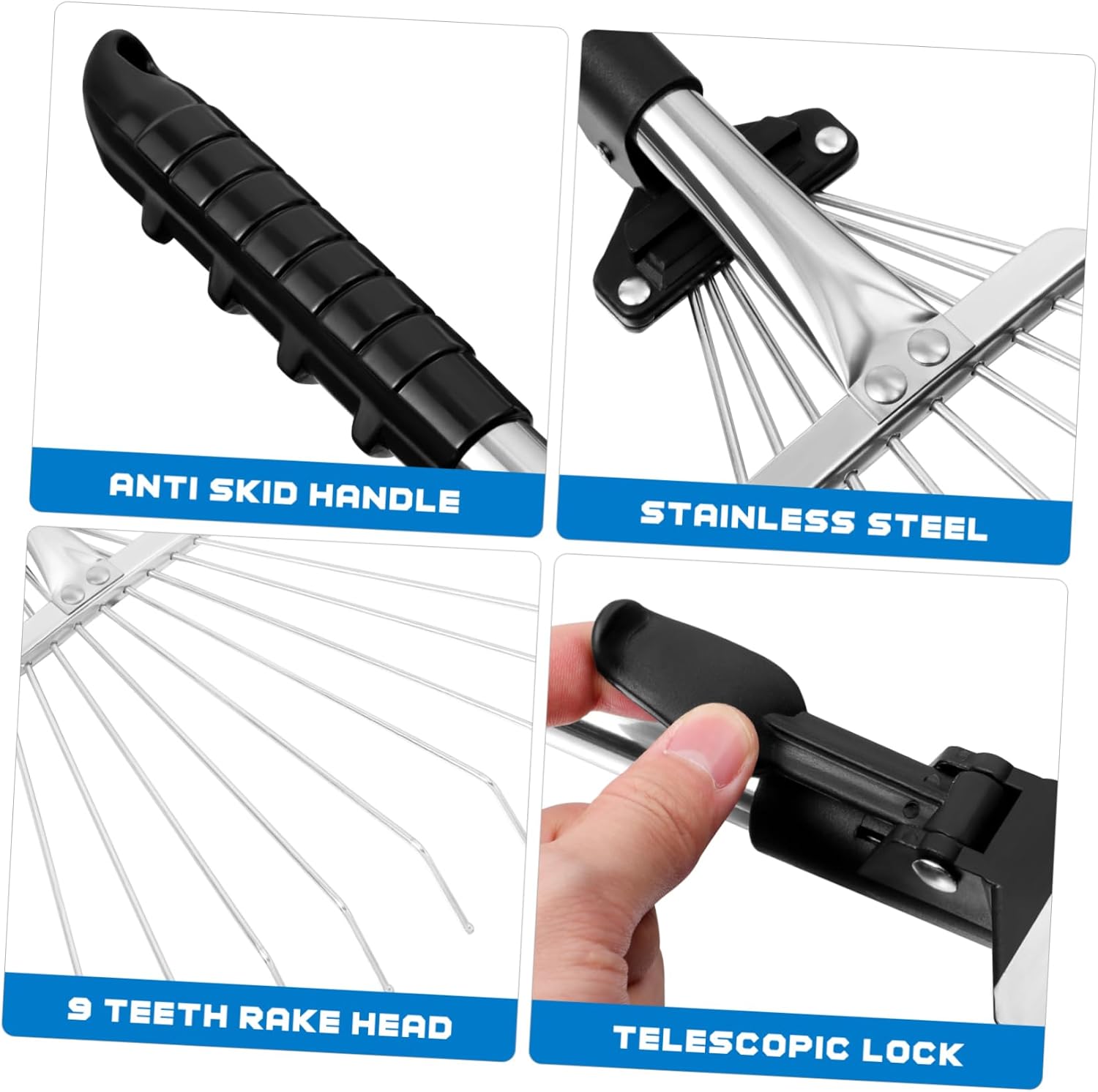 Description Garden maintenance is a breeze with our professional telescopic universal rake! This rake is for clearing leaves or debris and for tight spaces. The scalloped head and telescoping handle can be easily adjusted to find the fit for any yard project. Yard work may not be everyone' idea of fun, but you don' t have to feel uncomfortable while raking. Our telescopic rakes are comfortable and durable thanks to the easy- to- grip rubber grips. Feature- Color: As Shown.- Material: Stainless Steel, Aluminum alloy.- Size: 28. 30X11. 79X1. 97inch/ 72x30x5cm. Including 1 x Leave Rake