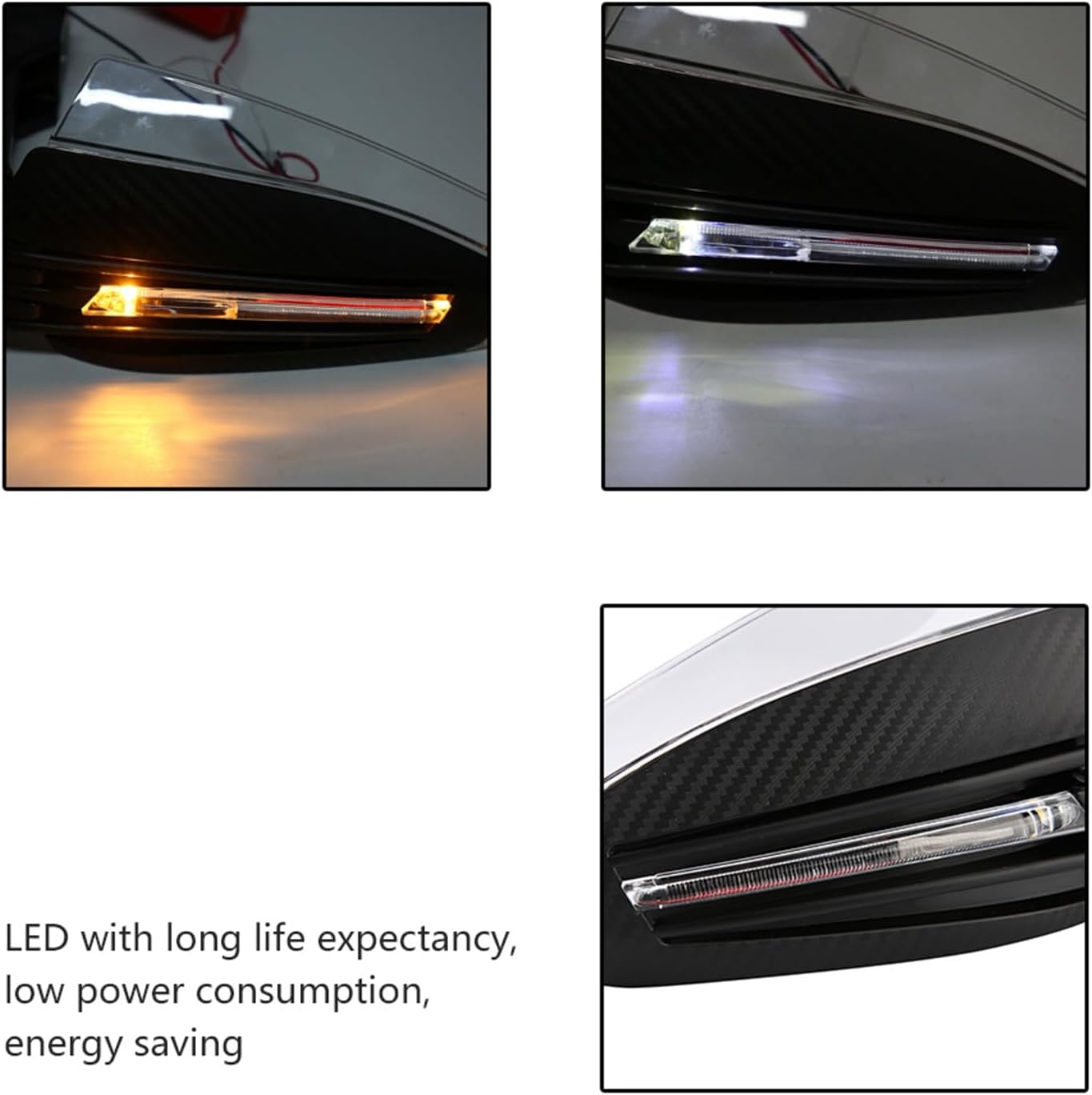 Specification: Condition: Brand New Material: ABS plastic Color: As Picture Shown Fitment: Universal for motorcycles with 7/8 (22mm) external diameter handlebars. Package Weight: Approx. 650g/22.9oz Wiring Prompt: Black line: negative, White line: positive, Yellow line: turn signal Package List: 2 * LED Hand Guards 2 * Screws