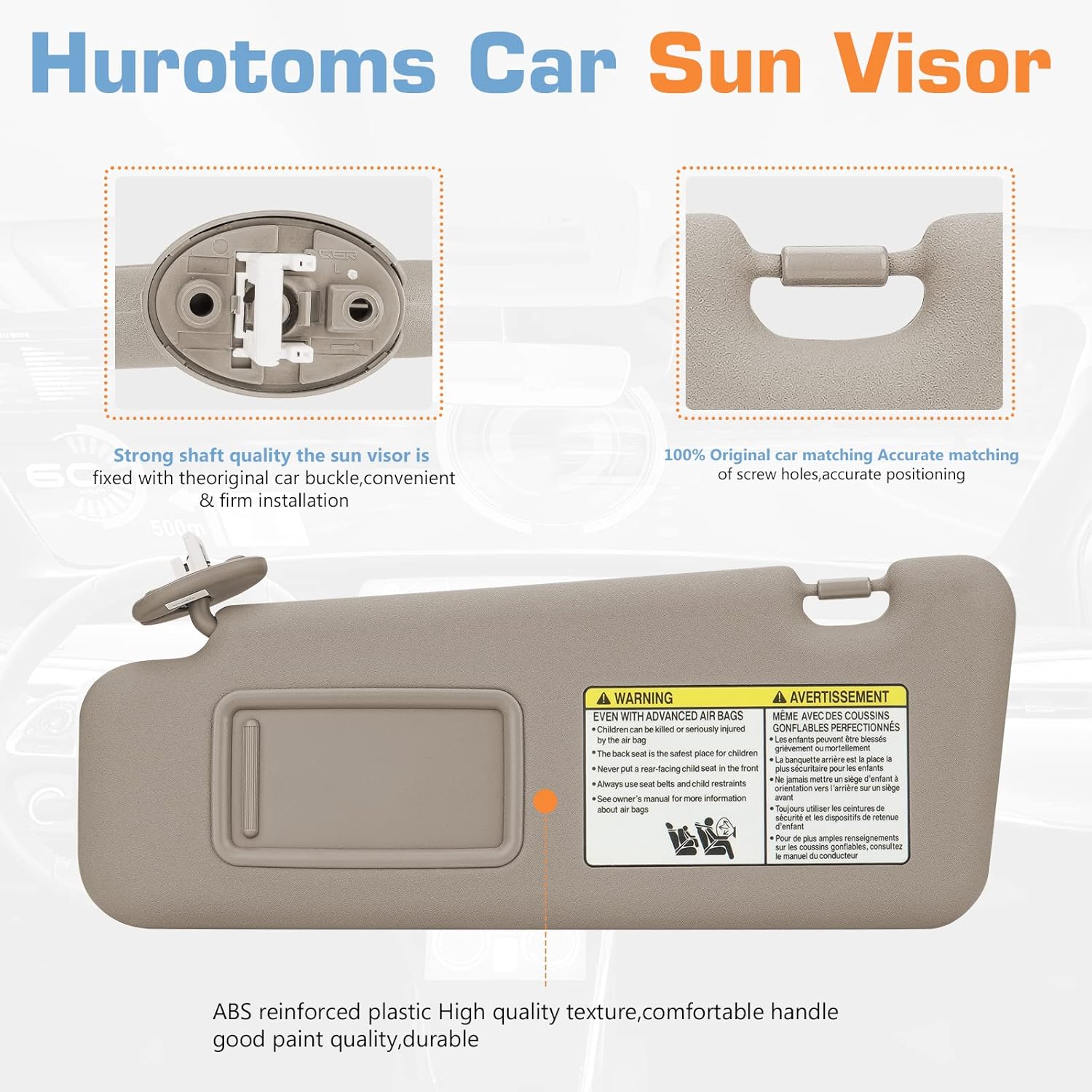 Upgrade your driving experience with our premium driver side sun visor, specifically designed as a direct replacement for Toyota Highlander. Left Driver Side Sun Visor Replacement Part Number: for 74320-48500-B0 Left Driver Side Sun Visor Fitment: Fit For Toyota Highlander 2008 sunshade Fit For Toyota Highlander 2009 Fit For Toyota Highlander 2010 sunshade Fit For Toyota Highlander 2011 Fit For Toyota Highlander 2012 sun visor Fit For Toyota Highlander 2013 driver side sunvisor replacement Specification: Type: Left Driver Side Sun Visor (This is a single-side replacement) Color: Beige Placement on Vehicle: Left Driver Side Light: Yes.This is a standard sun visor Hurotoms Vehicle Sun Visor: Our sun visor exhibits very slight color variation and closely matches the image shown, ensuring it integrates seamlessly with your vehicle’s interior Constructed with high-quality materials, this sun visor is built for lasting durability—helping you avoid frequent replacements We stand behind our product with reliable after-sales support, including a one-year support assurance, so you can purchase with confidence Package List: 1 x Left Driver Side Car Sun Visor Note: Fit for Toyota Highlander. Compatible with part numbers for 74320-48500-B0. Color: Beige