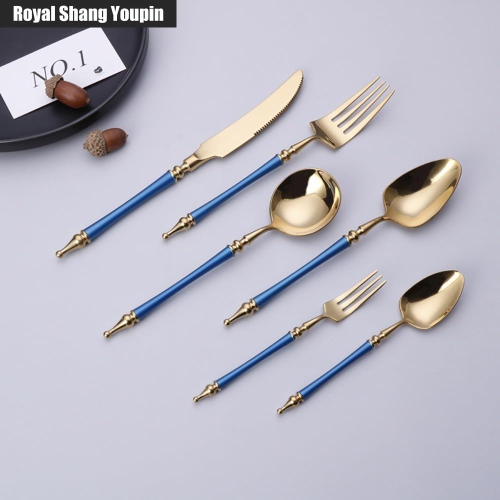 - ๐ใ Royal Shang Youpin ใ Packaging quantity: 5 pieces=(1 knife, 1 pointed spoon, 1 fork, 1 teaspoon, 1 dessert fork). 20 pieces=(4 knives, 4 pointed spoons, 4 forks, 4 teaspoons, 4 dessert forks). 6 pieces=(1 knife, 1 pointed spoon, 1 round soup spoon, 1 fork, 1 teaspoon, 1 dessert fork). 24 pieces=(4 knives, 4 pointed spoons, 4 round spoons, 4 forks, 4 teaspoons, 4 dessert forks). If you would like to purchase separately, such as a spoon, please contact us via [email]