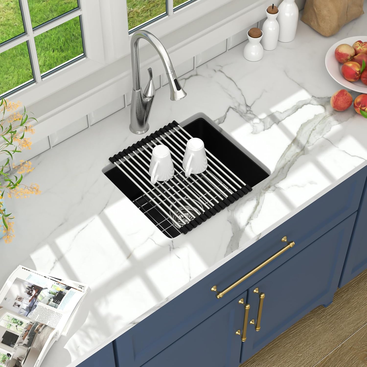 | Included Components | Black undermount bar sink granite composite, Roll-up rack for drying, bottom rinse grid, drain strainer&cutout template |