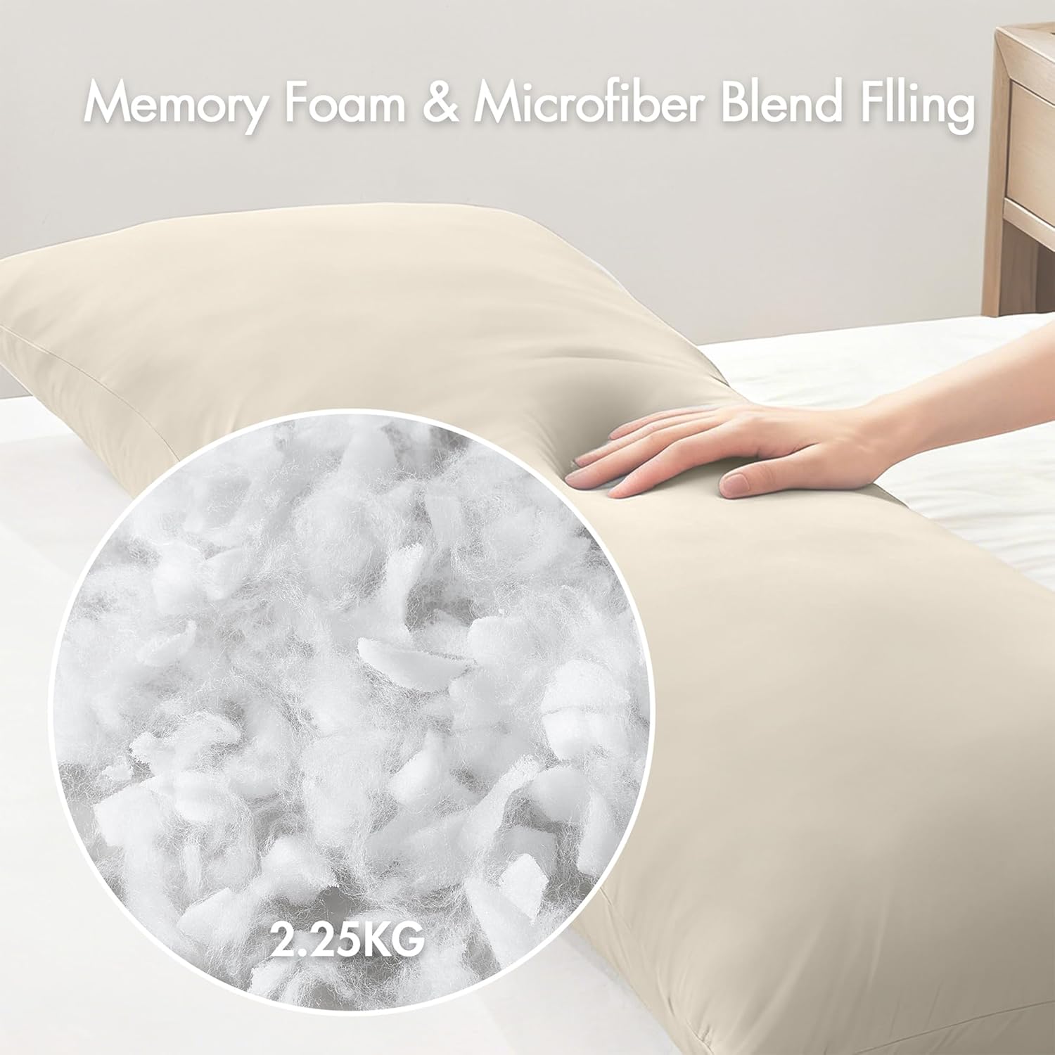 Experience full-body comfort, cooling relief, and balanced temperature regulation with this 20"x54" Cooling Full Body Pillow, thoughtfully crafted to contour your entire body from head to toe. Designed for side sleepers, pregnant women, post-surgery recovery, and menopause support, it promotes spinal alignment, relieves pressure points, and enhances airflow for deep, restorative sleep. The pillow features a Cooling Temperature Regulation Fabric made from 88% nylon and 12% spandex — smooth, stretchy, and moisture-wicking to deliver instant coolness and maintain comfort throughout the night. Its weighted jersey inner liner adds structure and prevents lumpiness, ensuring the 2.25 kg memory foam and microfiber filling stays evenly distributed for long-lasting comfort. The blend of memory foam and microfiber achieves the ideal balance of support and plushness — firm enough for proper alignment, yet soft enough for a cloud-like feel that won’t flatten over time. A removable, machine-washable outer cover with a durable zipper makes cleaning simple and convenient. With its ergonomic, full-body design that cushions the head, neck, back, belly, hips, and legs, this pillow helps reduce pressure points and support a healthier sleeping posture. Whether you’re seeking cooling comfort during menopause, extra support during pregnancy, or just a more restful night’s sleep, this breathable, supportive body pillow keeps you relaxed, refreshed, and perfectly balanced all night long.