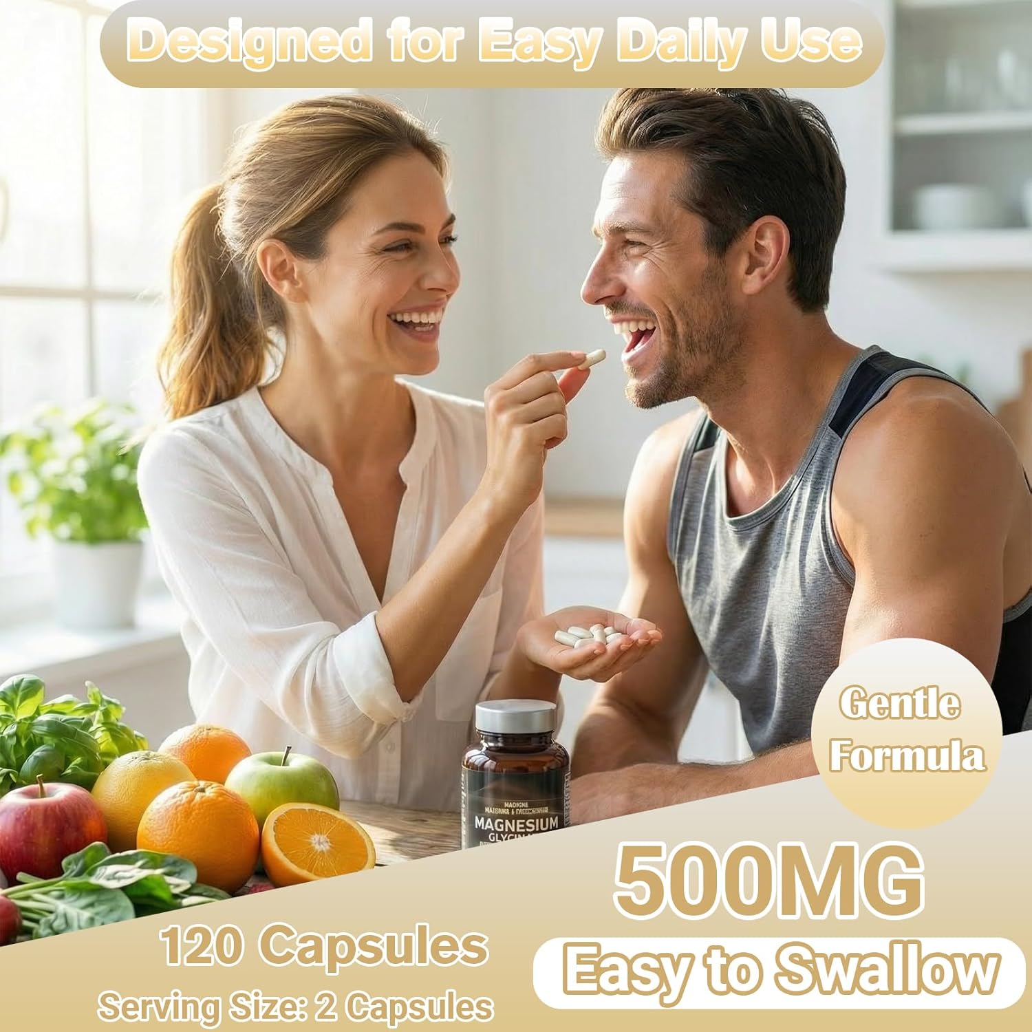 Experience optimal absorption with Magnesium Glycinate 500mg with Vitamin D3 — a premium mineral supplement that combines chelated magnesium and Vitamin D3 for everyday bone, muscle, energy support.
