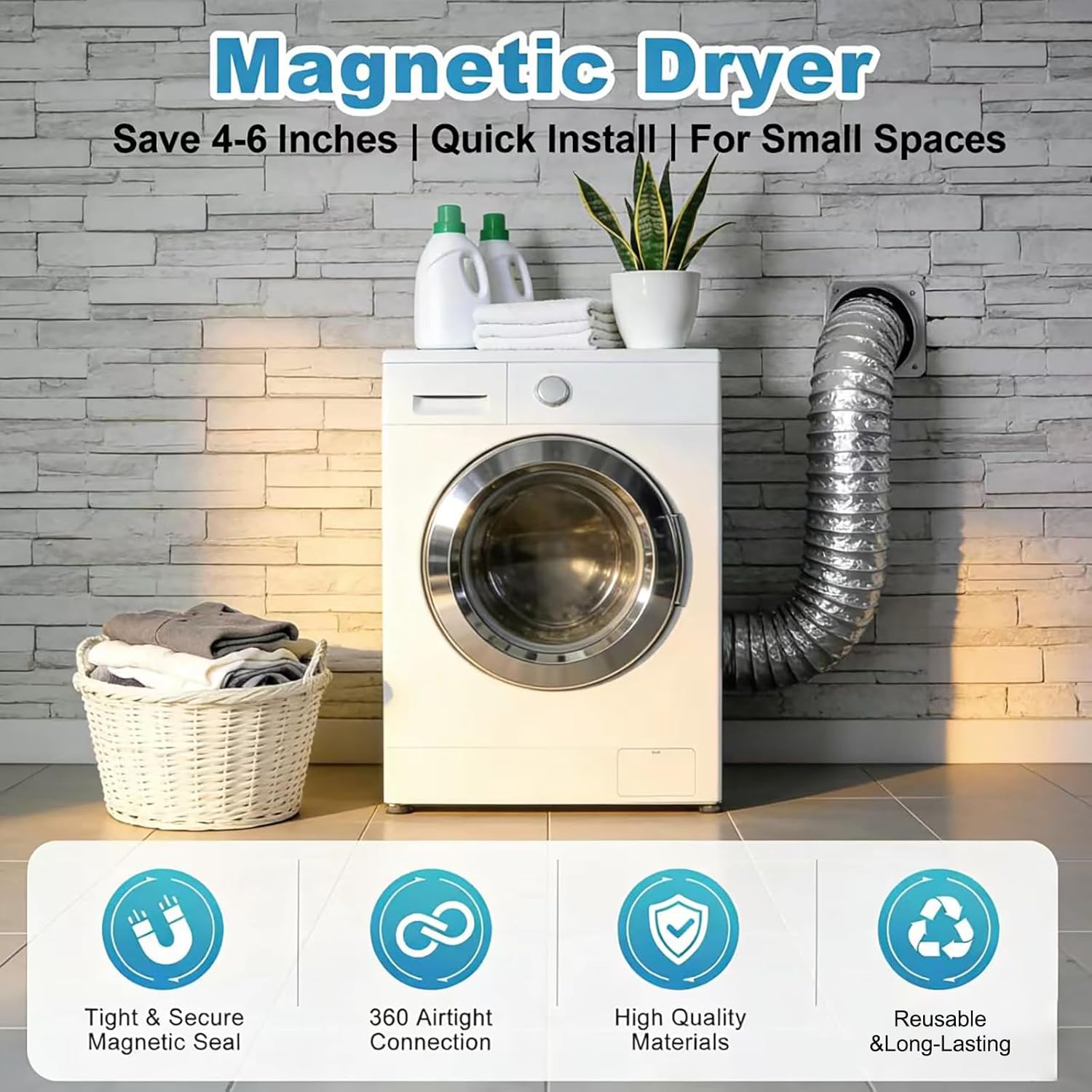 | Included Components | 2 Stainless Steel Clamps, 4-inch × 3.3-foot Aluminum Foil Dryer Exhaust Hose, DV180 Magnetic Coupler, Screws,Wall Plugs, Screwdriver, a Pair, Wall Adapter |
