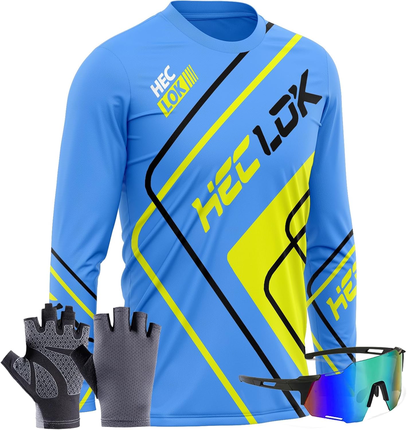 HECLOK is designed for all levels of cycling, including road and mountain biking. We can guarantee top-level quality and good design, we also accept your special customized. Reasons to Choose Our Cycling Shirt đWe also provide you with a pair of professional cycling gloves đAt the same time, we also equip you with high-end riding windproof goggles đProvide excellent moisture management đEasy to wash and wonât lose its color or fit đThe fit of the arms and body are good for a relaxed upright sitting position đThe simple basic colors are eye-friendly and avoid ugly color combinations đTake away the sweats quickly and you wonât feel the bike jersey adhere to your skin please refer to the size chart in the picture to order the right size. Package IncludeïŒ 1 x Cyling Jersey 1 x cycling goggles 1 x Professional cycling gloves Warranty: Any questions you have, please don't hesitate to contact us. We will get you back within 24 hours. add to cart! Enjoy a wonderful ride time!