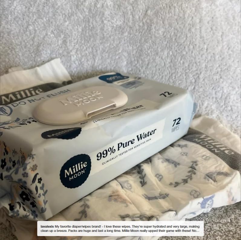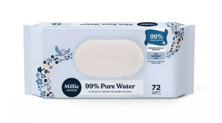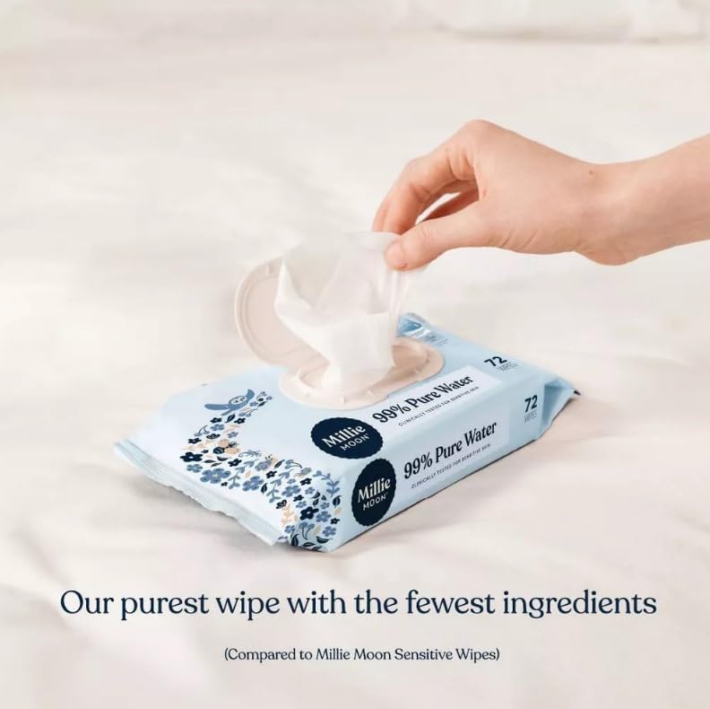 Experience ultimate gentleness with Millie-Moon's 99% Pure Water Luxury Baby Wipes. This generous bundle includes 8 packs containing 72 wipes each, giving you a total of 576 wipes to keep your little one clean and comfortable. These premium wipes are formulated with 99% pure water, making them exceptionally mild and suitable for your baby's delicate skin. Perfect for diaper changes, messy faces, and sticky hands, these wipes provide thorough cleansing while maintaining skin's natural balance. The convenient pack size ensures you'll always have fresh wipes within reach, whether at home or on the go. Each wipe is designed to be soft yet strong enough for effective cleaning. Stock up with this bulk pack and enjoy the peace of mind that comes with having plenty of gentle, pure water wipes available for all your baby care needs.