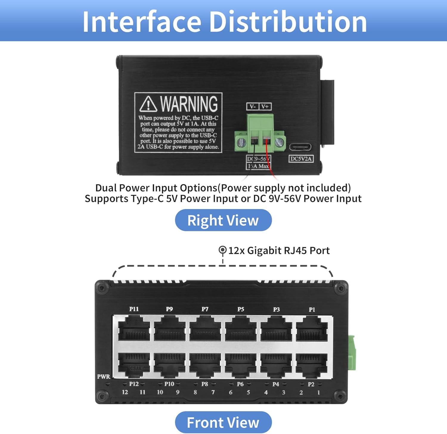 | BuiltIn Media | 1*ATROODAC Industrial 12 Ports Gigabit Switch, 1*Terminal Block, 1*User Manual |