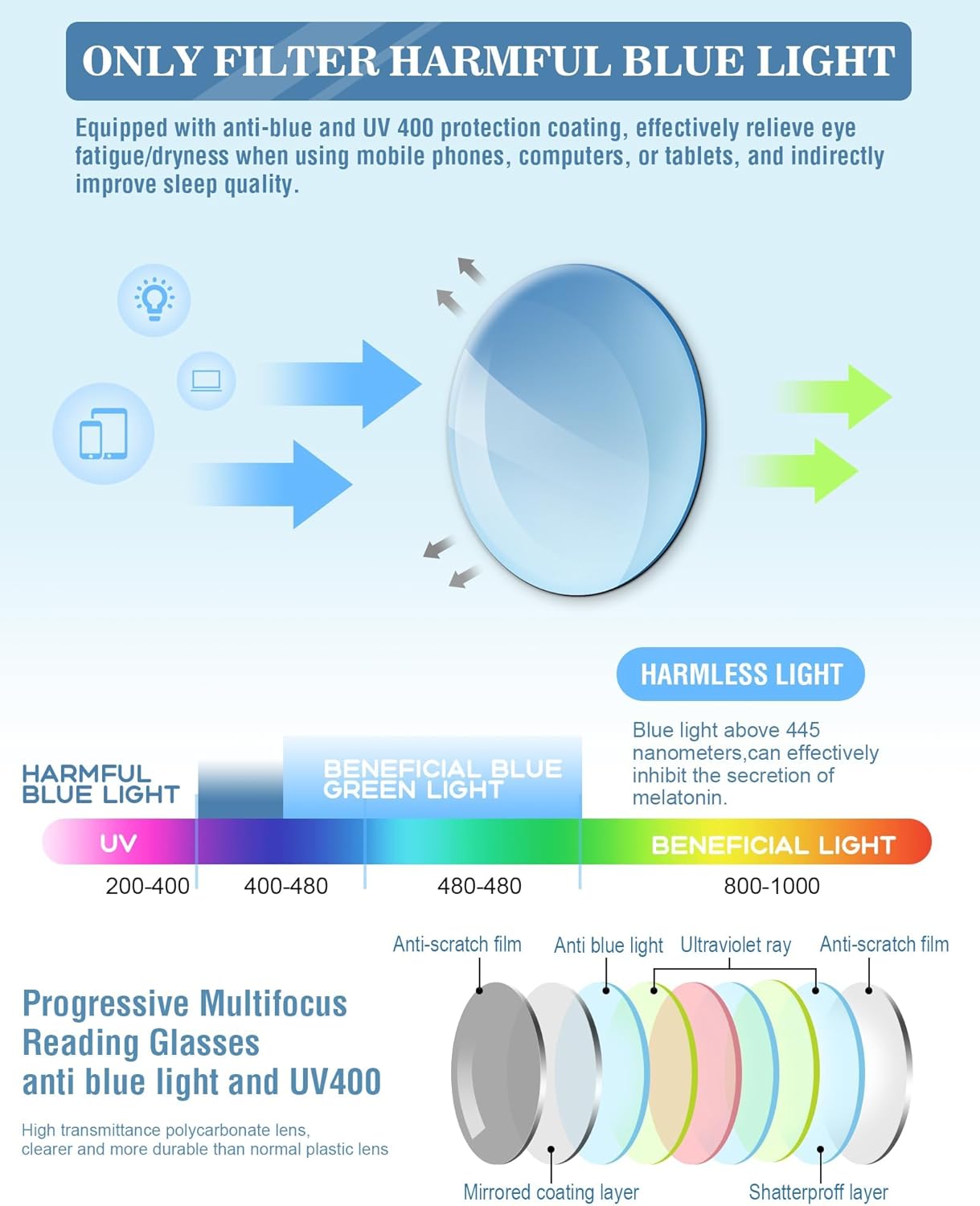 | Lens Coating Description | Anti-blue Light & UV 400 Protection |