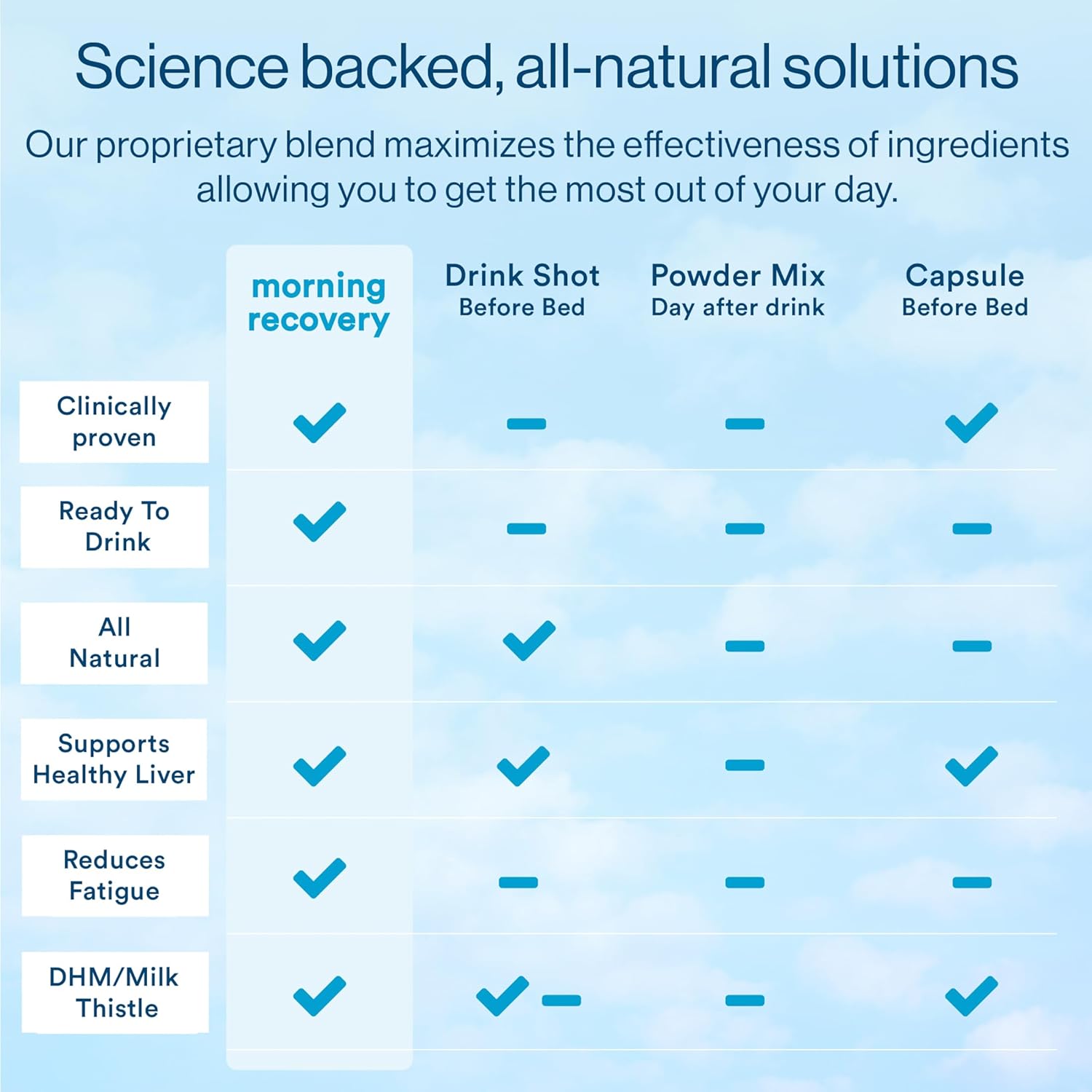 Morning Recovery is the drink for when you drink. Made with patent-pending technology and designed to help you rehydrate, restore vital nutrients, and feel better after a night of drinking. This statement has not been evaluated by the FDA. This product is not intended to diagnose, treat, cure, or prevent any disease.