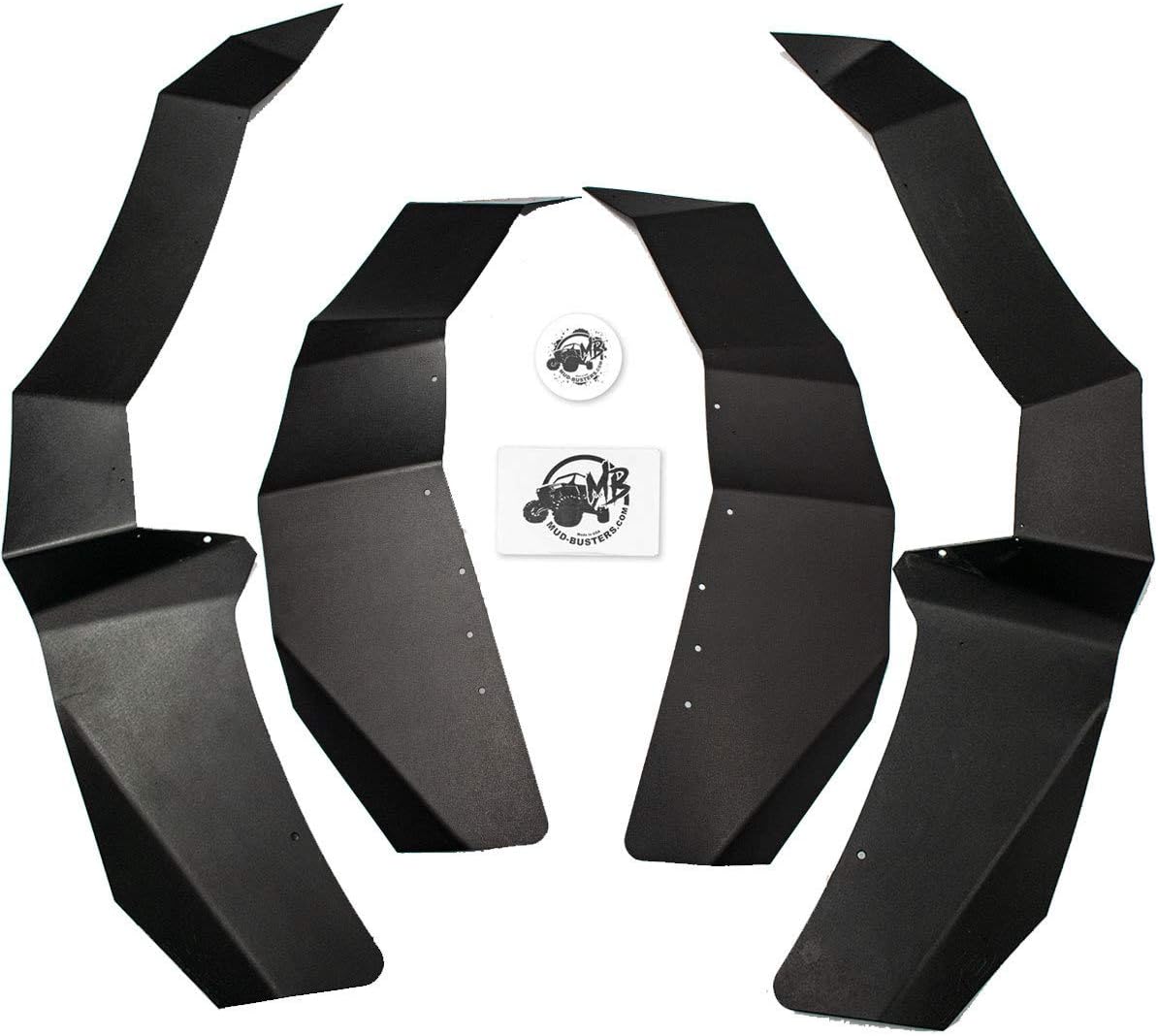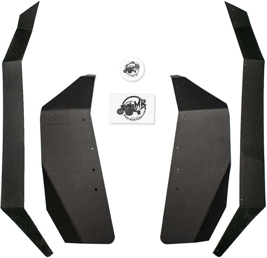 The Kawasaki TERYX KRX 1000 is a prime example of the essence of MudBusters existence. Our fender flares allow owners to experience this machine's power and versatility without wearing what the KRX 1000 drives through. Protection for the driver and passengers for a more enjoyable adventure and less time cleaning up! Kawasaki’s promised high-performance side x side does not disappoint. KRX 1000 owners can take on unpredictable terrain in any direction! MudBusters Kawasaki KRX 1000 fender flares complement this machine's aggressive design and give you the only thing this machine lacks, COVERAGE!!! MudBusters SUPER Max Coverage Front fenders add 9.5 inches of additional coverage above your front tire, 6 inches in the middle of your front fender, and 7.5 inches behind your front tire! The rear fender flares add 6 inches of additional coverage in front of your rear tire, follows your rear fender tapering down to 3.5 inches above your rear tire, and then adds 3 inches of extra coverage beside the rear tail light! SUPER Max coverage is HIGHLY recommended for stock KRX 1000’s and KRX 1000 models equipped with offset wheels and tires. The photos here are of a stock machine equipped with SUPER MAX MudBusters Fender Flares to see if this kit is for you! SUPER Max Coverage UTV Front and Rear Fender Flares by MudBusters provide everyday protection for you and your machine in a one-piece fender flare design. MudBusters uses a higher quality material to take on whatever the day brings, working as hard as you do! MudBusters is a USA-based company that creates jobs here in America where we all like to work and play. Stays protected from the elements on your next adventure with MudBusters