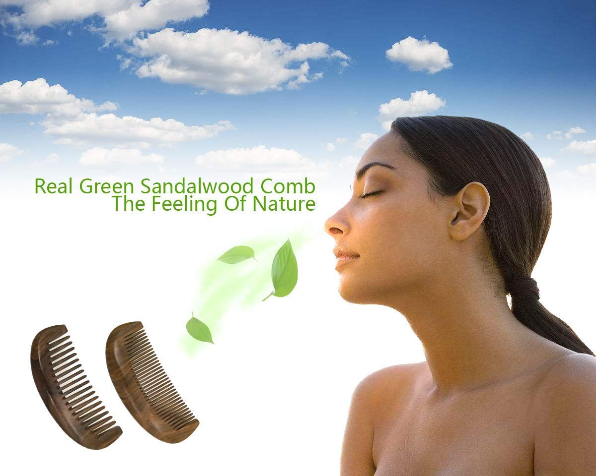 Its workmanship is incomparable with other cheap products, and each comb is handmade! Careful craftsmen, hand-polished the rounded tips, hand-made U-shaped groove, just to improve its quality, not to hurt hair or beard.Its selection is real high quality green sandalwood, its oil content makes it sparkle, its high density makes it heavier than the cheap comb, with a fresh sandalwood fragrance, its color will turn green over time,the Sandalwood aroma calms the mind, soothes stress and nervous tension, its material is the best in green sandalwood!But it is a perfect gift, decades of persistence, can be a witness to friendship, love, affection, it the perfect gift look for Valentine’s Day, Christmas, birthday or anniversary.Note:Do not drop sandalwood combs on hard floors (like concrete floor, tile floor etc) or collide them with other hard objects.Do not soak sandalwood combs in water especially hot water for a long time. If you have to wash them, remember to wipe them dry with a cotton towel afterwards.Do not put sandalwood combs in strong light or high temperature. Keep them away from fireplaces and ovens especially.The sandalwood resin may condense into crystal substance like fuzz on the surface of the sandalwood comb. You can easily dust the crystal substance off or wipe it from the surface with a cotton towel.A small amount of olive oil can be used to maintain sandalwood combs smooth and shiny.