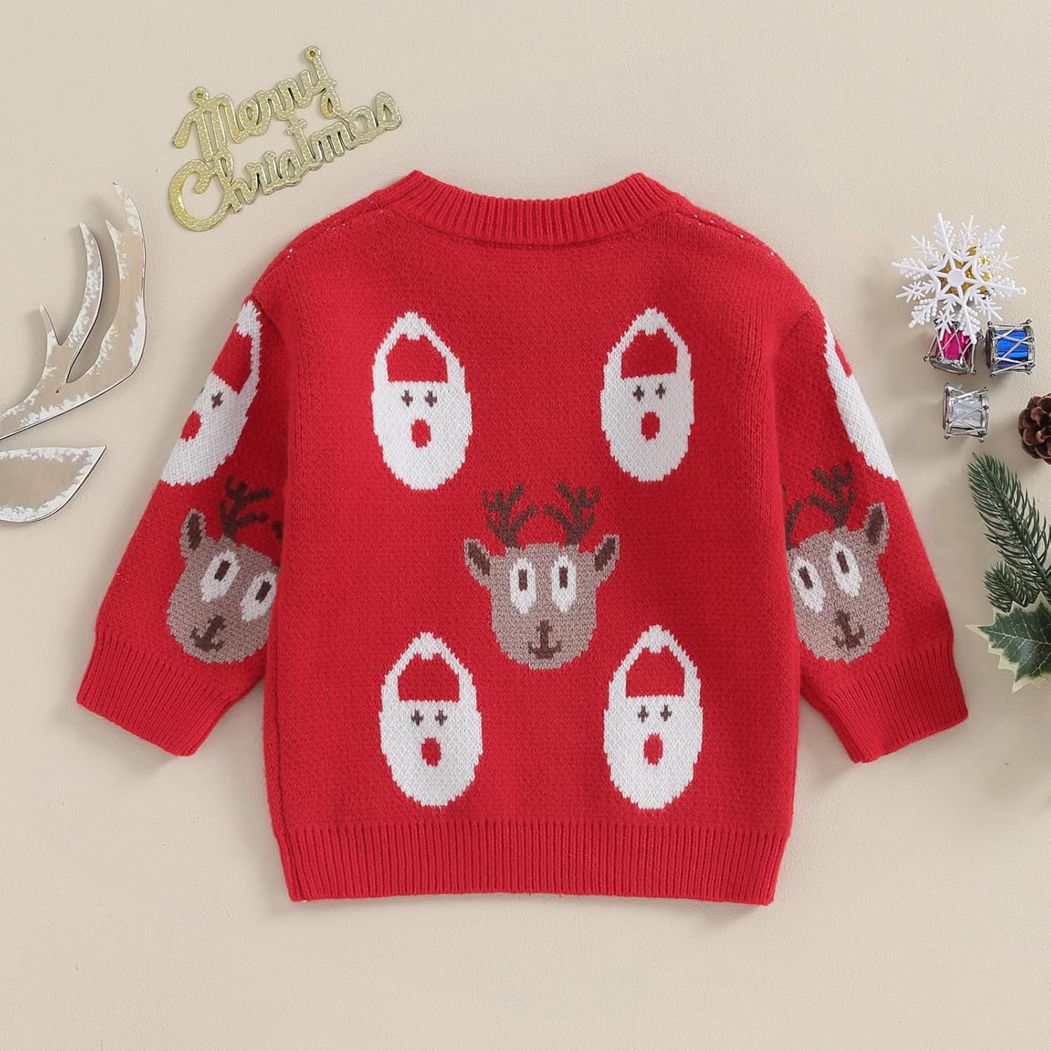 Newborn Baby Girl Boy Merry Christmas Knit Sweater Tops Round Neck Long Sleeve Pullover Sweatshirt Fall Winter Clothes
