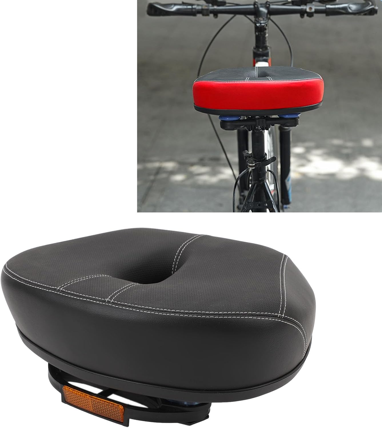 1. Noseless Design: Noseless design reduces friction between the thighs and the cushion, greatly improves comfort and releases pressure on the back and tailbone, no pain or discomfort for long rides. Give you the most comfortable and best riding experience ever. 2. Keep You Cool: Airflow vent in middle accommodates circulation of buttock and speed up the air flowing and heat dissipation, keep your buttock a long time cooling and dry. 3. Shock Absorption: Arc technology and shock absorbing ball design. It ensures absorbing the shocks coming from the bumps, potholes or any difficult terrain you are riding on. Just enjoy your happy long distance riding. 4. Ergonomic Design: Hollow integrated Bikes saddle, this provides an ergonomic seat and riding enjoyment for hours and hours without pain. Great for men and women who ride indoors or outdoors. 5. Enjoy Riding: Our Bikes seat is padded, soft and comfortable, perfectly to your body and ensures a comfortable seat due to decompression. Effectively alleviating sedentary fatigue, no deformation. Spec: Item Type: Bikes Replacement Saddle Material: Memory Foam, PU Leather, Iron, Plastic Package List: 1 x Bikes Replacement Saddle