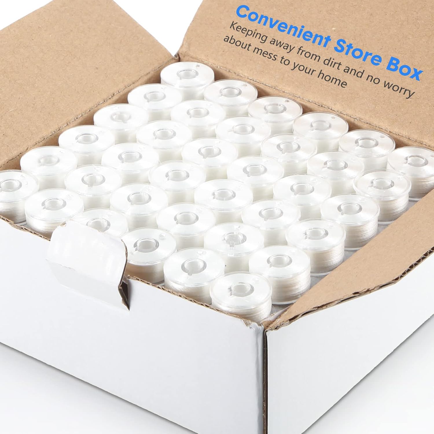 Features: Size information: The prewound bobbins are of size A, the diameter is approx. 0.8 inch, the height is approx. 0.45 inch, you can roll the threads conveniently, the length for each thread is approx. 60S/2 100 yards, sufficient for you to do DIY embroidery works, they are easy for you to trim into different lengths needed. Convenient to store: We provide boxes for you, you can store the white sewing bobbins conveniently, each bobbin can be stored on the top of one another, not taking much space, keeping them away from dirt, and no need to worry they will cause a mess to your home. Specifications: Main material: spun polyester Color: as picture shown Size: as picture shown Package includes: 288 x Sewing bobbins Note: Manual measurement, please allow slight errors on size. The color may exist slight difference due to different screen display. Winding risk may exists, please keep the thread away from little kids. The models above are only for purpose of expressing compatibility, not for trademark, and our trademark is Nuanchu.