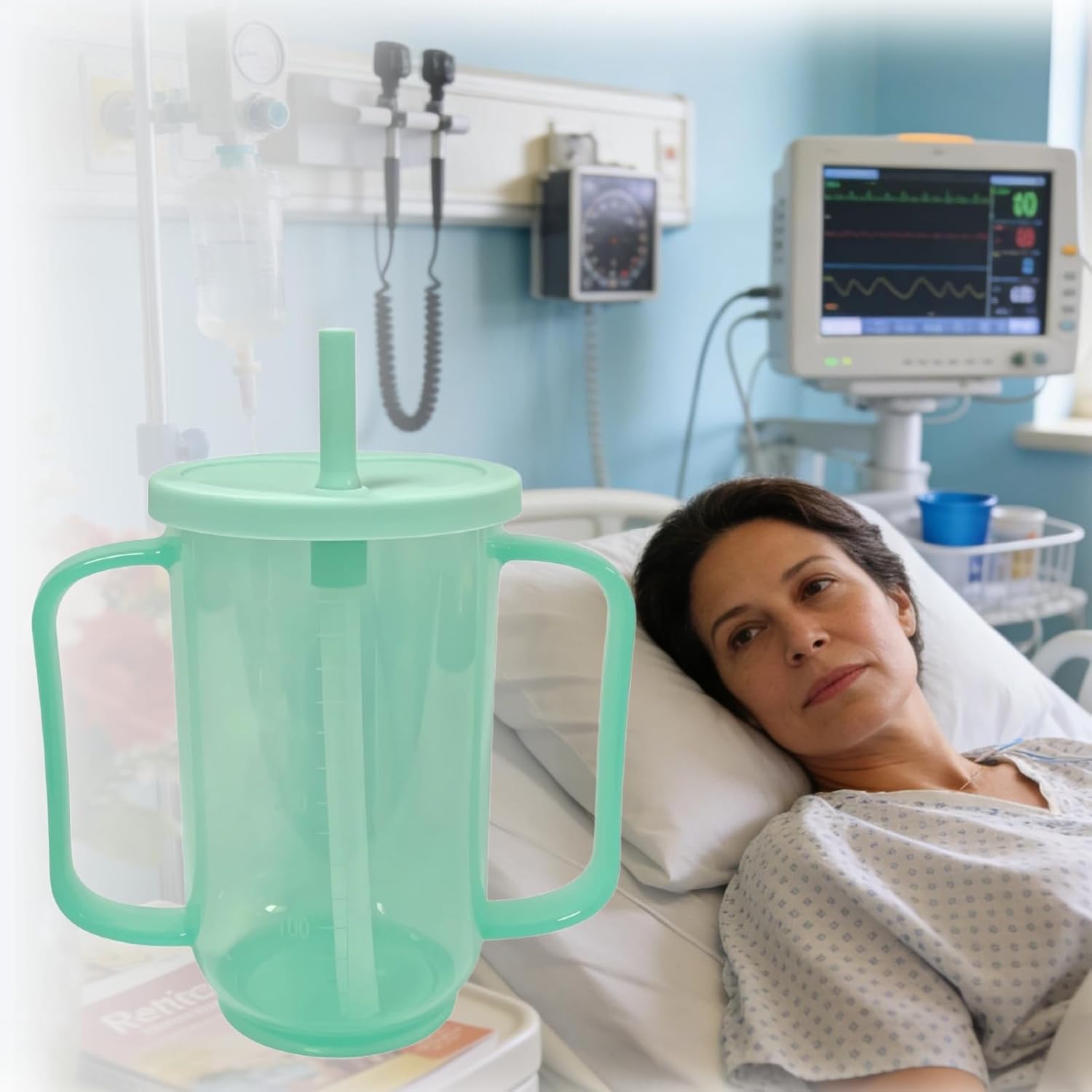 Nursing Cup, Double-Handled Oblique Cup, Suitable for Pregnant Women, the Elderly, and People with Postoperative Inconvenience.(Green)