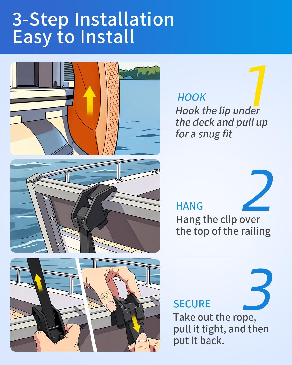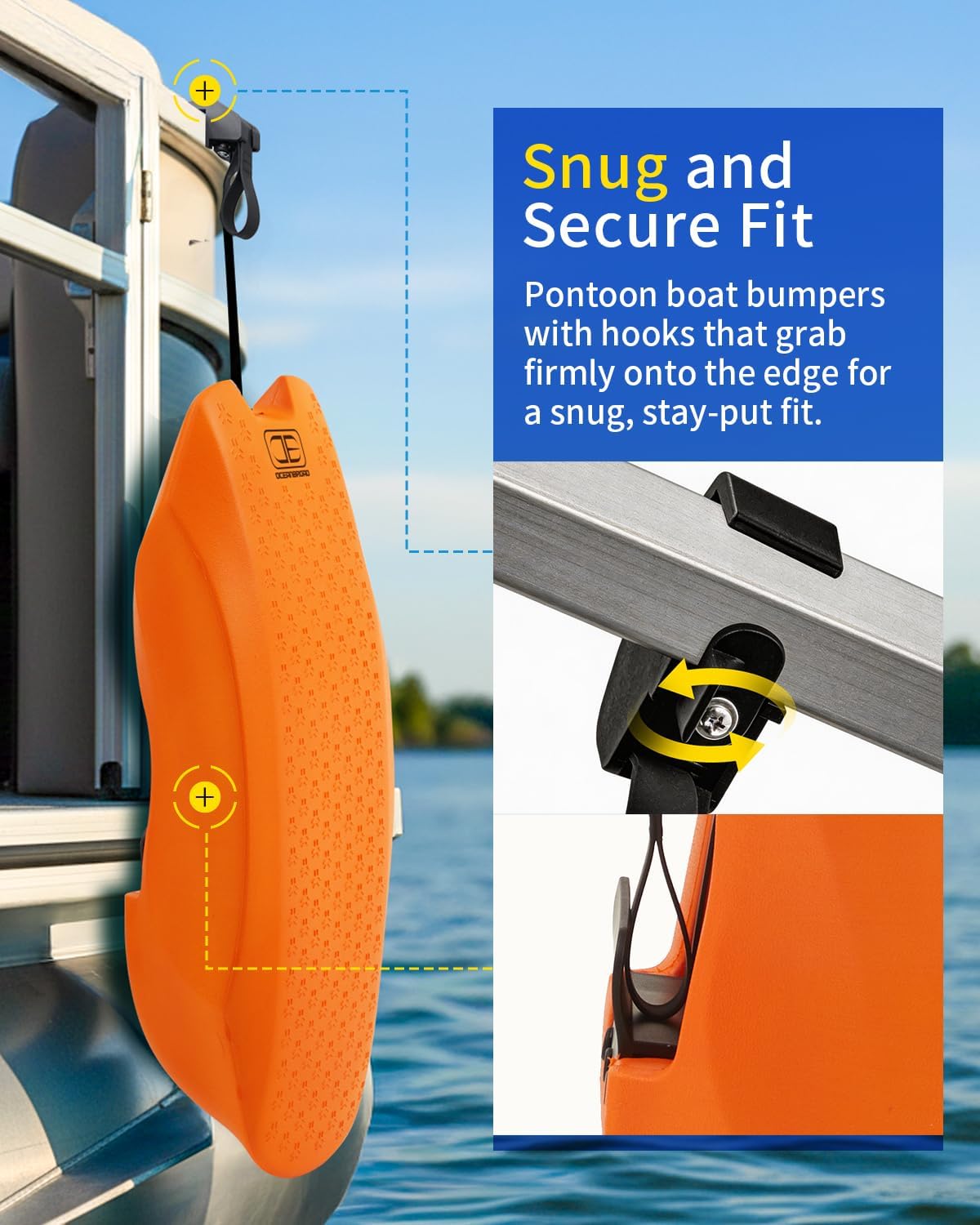 OCEANBROAD Pontoon Fenders Boat Bumpers for Docking 2-Pack, Rail-Mounted Non-Inflatable EVA Foam Fenders with Locking Grooves & Quick-Release Clips, Universal Fit for Pontoon Boats 14-28ft