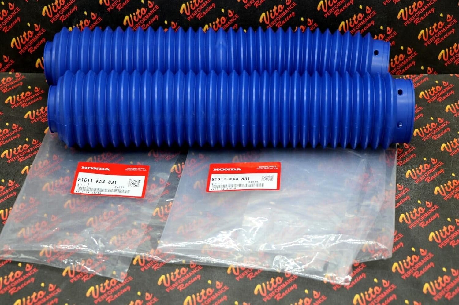 This is a pair of BLUE fork boots This is a genuine OEM fits Honda factory part from our local fits Honda dealership This is in stock, and from Michigan, USA! OEM part number: 51611-KA4-831 Fits: 1987 CR125R 1985-1987 CR250R 1985-1987 CR500R 1985-1987 XR600R