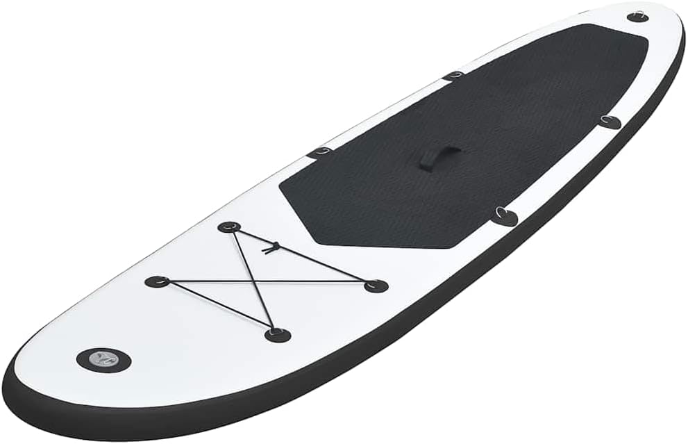 This SUP set is designed to bring you lots of fun on the water. It is an ideal choice for paddlers. Its width and thickness ensure a comfortable and stable paddle. EASY TO USE AND STORE Equipped with special high pressure screw valves, it is easy and quick to inflate and deflate. A handy carry bag is included for quick and easy transport. Perfect Curve Level This SUP board is designed with the perfect curve level, improving its rigidity for a more stable ride. This board glides effortlessly over flat waters and moves smoothly through the waves. Durable material: the inflatable SUP board is puncture-proof and UV resistant and withstands extreme water conditions. Two prefixed fins and a removable fin are durable to withstand the pressures of the paddle. Good to know: This product is designed for adults. Non slip pads material: EVA Inflated size: 330 x 72 x 10 cm (L x W x H) Slim size: 20.5 x 18.5 cm Maximum number of people: 1 adult Maximum load capacity: 100 kg Maximum operating pressure: 12 psi Unbreakable and UV resistant. The package includes: 1 x 310 cm paddle board. 1 x 185 cm aluminium oar 1 x removable spoiler 1 x High Pressure Hand Pump with High Pressure Gauge 1 x Repair Kit: Glue & Patch 3-Ply 1 x carry bag. Note: This product is compatible with EN 15649 standard Material: PVC: 100%