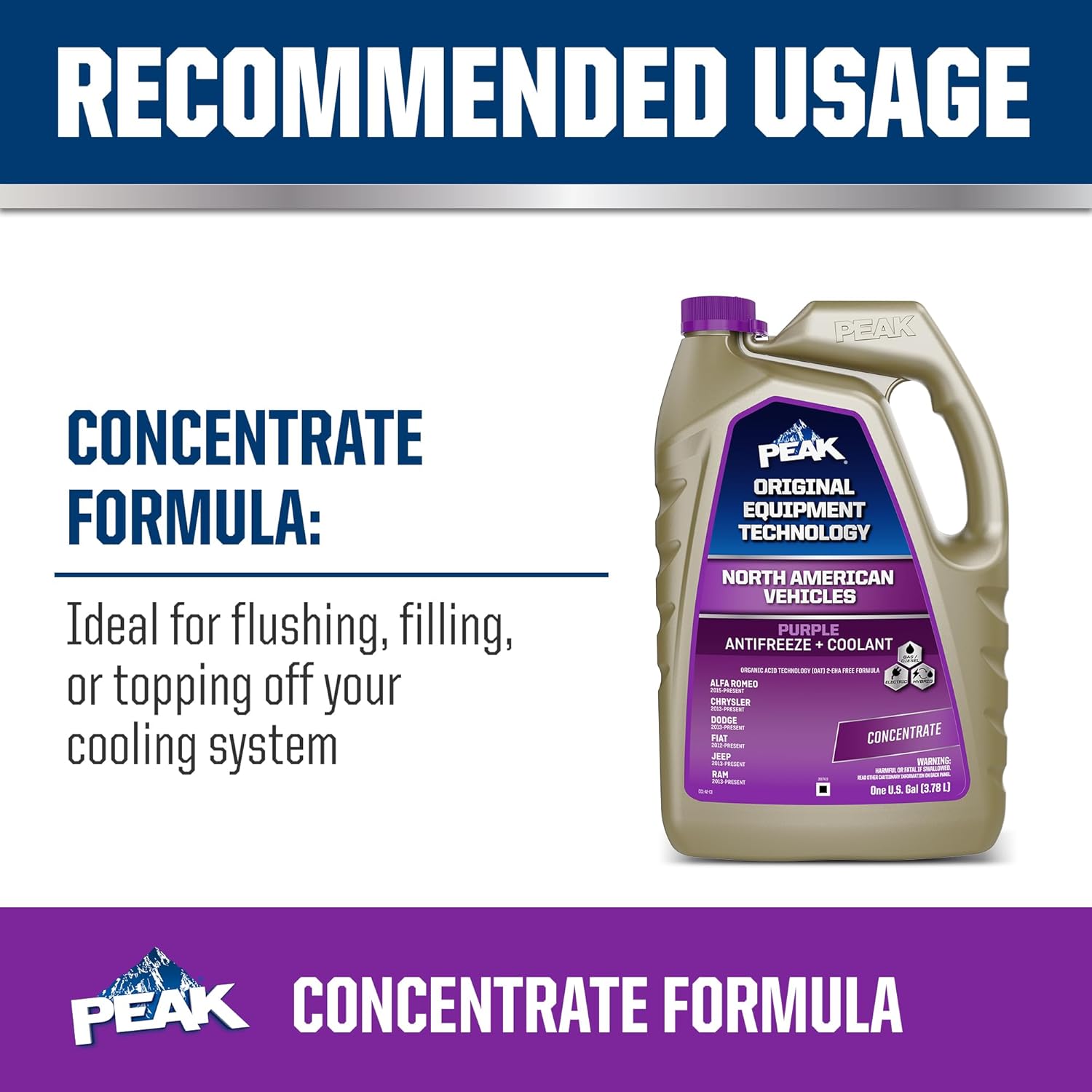| Model | PEAK OET Extended Life Purple 50/50 Prediluted Antifreeze/Coolant for North American Vehicles, 1 Gal. |