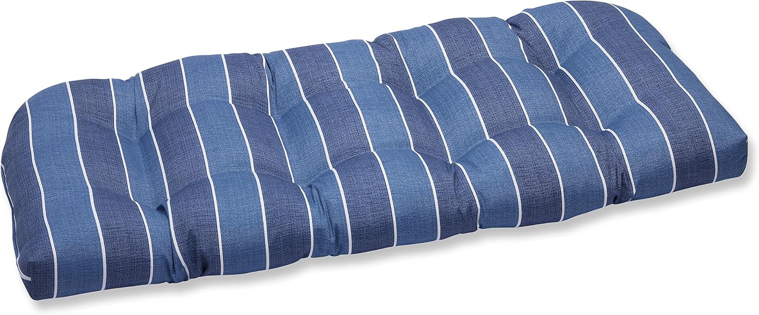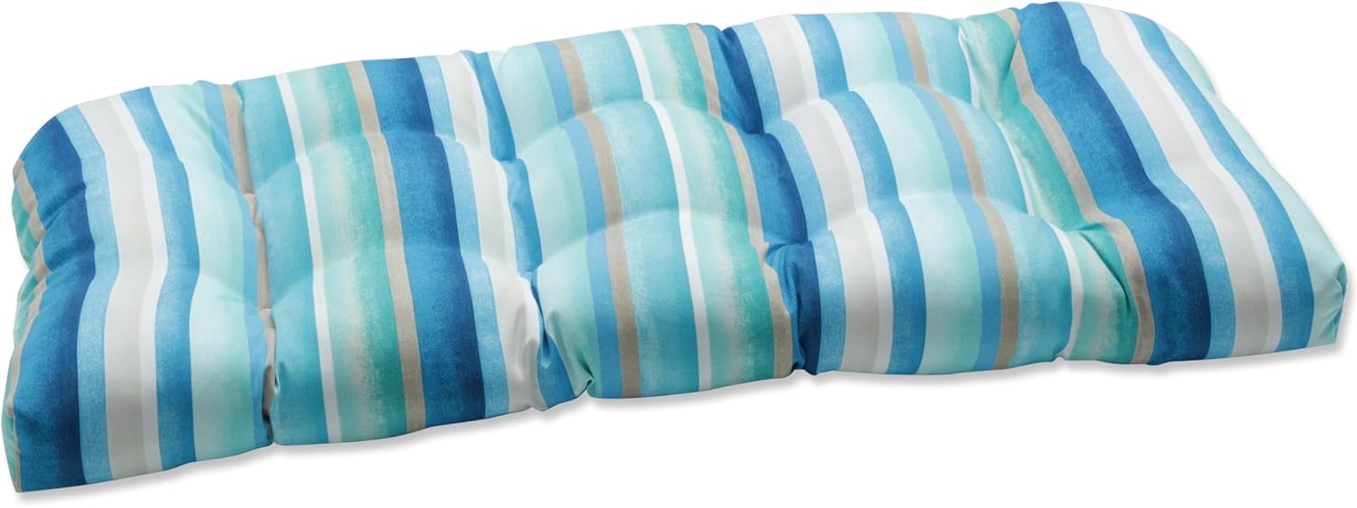Magnificent stripes create the look of a charming summer escape with this outdoor tufted loveseat cushion. Its pattern has fun stripes with varying widths in refreshing shades of blue, green, yellow and white. Made of fade-resistant polyester fabric, it's perfect for a patio or sunroom. Additional features of this outdoor tufted loveseat cushion include recycled polyester fiber fill and a sewn seam closure. Also suitable for indoor use.