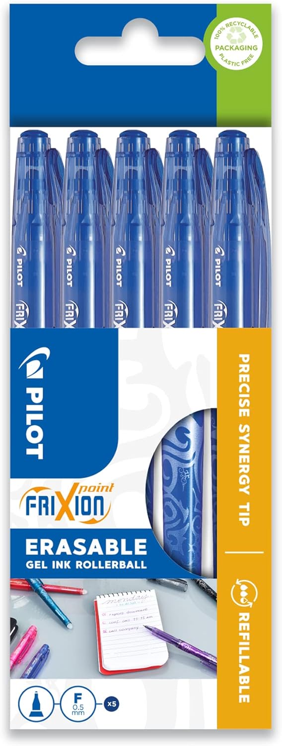 NEVER cross out again with FRIXION POINT, the erasable pen from Pilot! This unique product allows you to cleanly erase, delete and rewrite - all with the same pen. Simply rub out your mistakes with the eraser stud and watch the ink disappear as if by magic! The unique gel ink responds to the heat generated by the rubbing out, and lets you write over your mistake immediately with the same pen. The FRIXION POINT also features a Hi-Tecpoint nib which lets you write with incredible precision compared to cone rollerballs. Available in black, red, blue, green, violet, pink & light blue, there's a FRIXION for everyone! And you can save yourself money and be kind to the environment by refilling your FRIXION POINT instead of buying a new one - it's never been easier to be green!