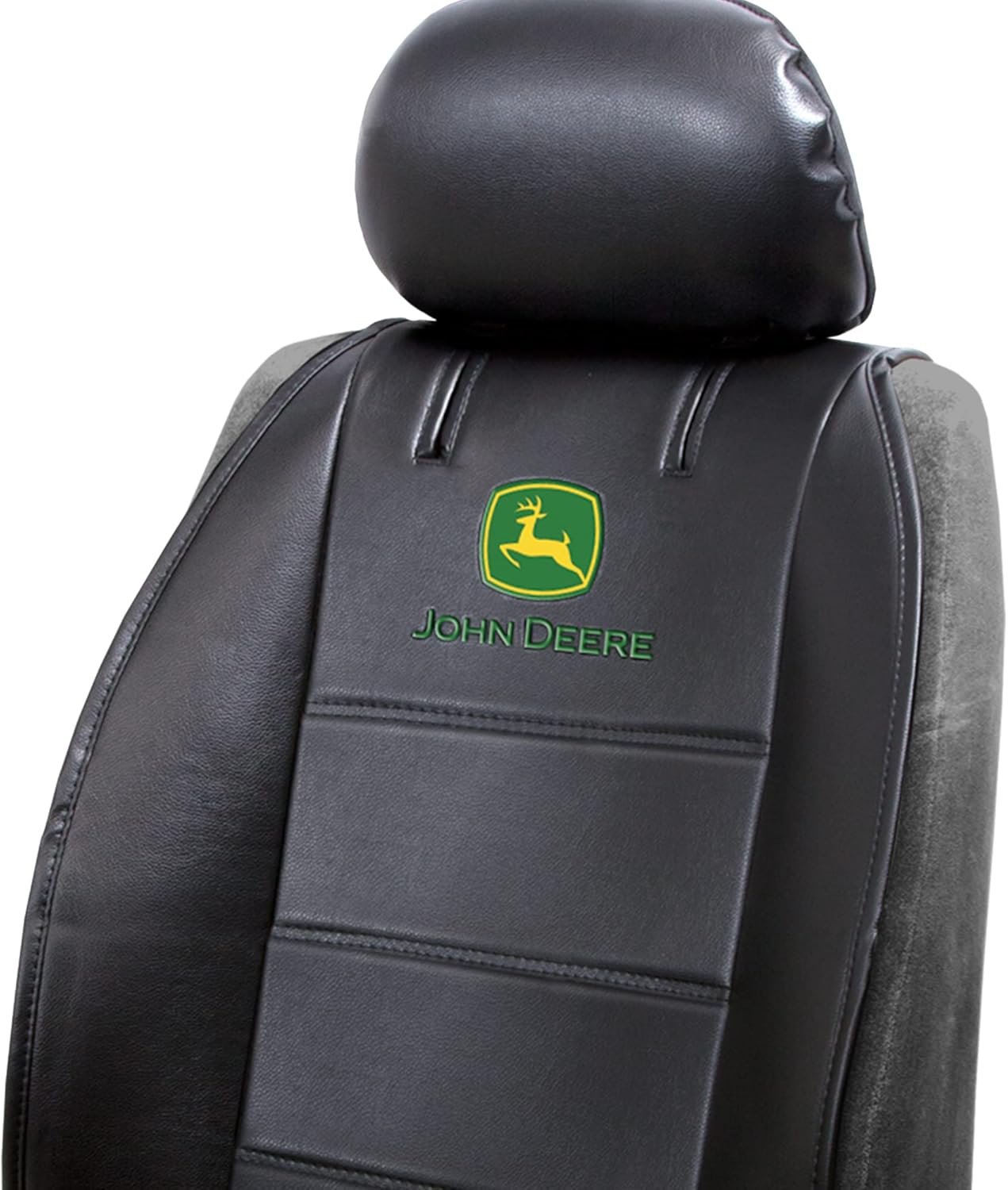 Plasticolor’s John Deere Logo Sideless Seat Cover was built with quality and style. This Listing is for a Single (1) Seat Cover. This Universal Fit seat cover was designed to fit MOST vehicles, however individual fit will depend on your vehicles specific Make, Model and Year. Your vehicle must have a detachable headrest and you must be able to pull an installation tab thru between the seat portion and back upright portion of the seat. Plasticolor’s air-bag compatible design adds comfort and style to your vehicle while protecting the vehicle's original seat cover from wear, tear, dirt, spills and sweat. Each Seat Cover comes with a spacious cargo pocket to use on the backside of the seat. Made of durable, easy to clean poly-vinyl material with high quality stitching, giving it a bold and clear style that’s sure to make your seat covers stand out on the road. Plasticolor's John Deere cover will have your seat looking and feeling fun, sporty, classy, and fashionable everywhere you drive your vehicle. Due to the seat cover being packaged compactly, please lay flat for a while, they will look better upon initial installation, the creases will gradually disappear.