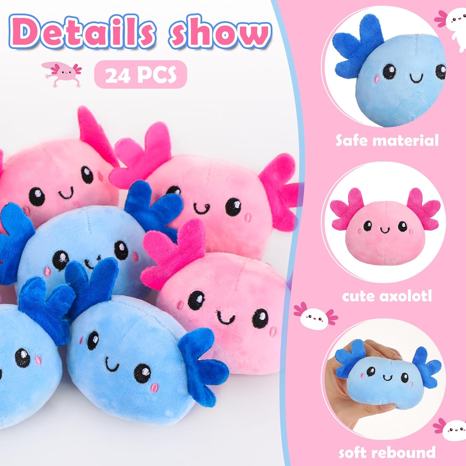 | Included Components | 24 x Axolotl stuffed animal |