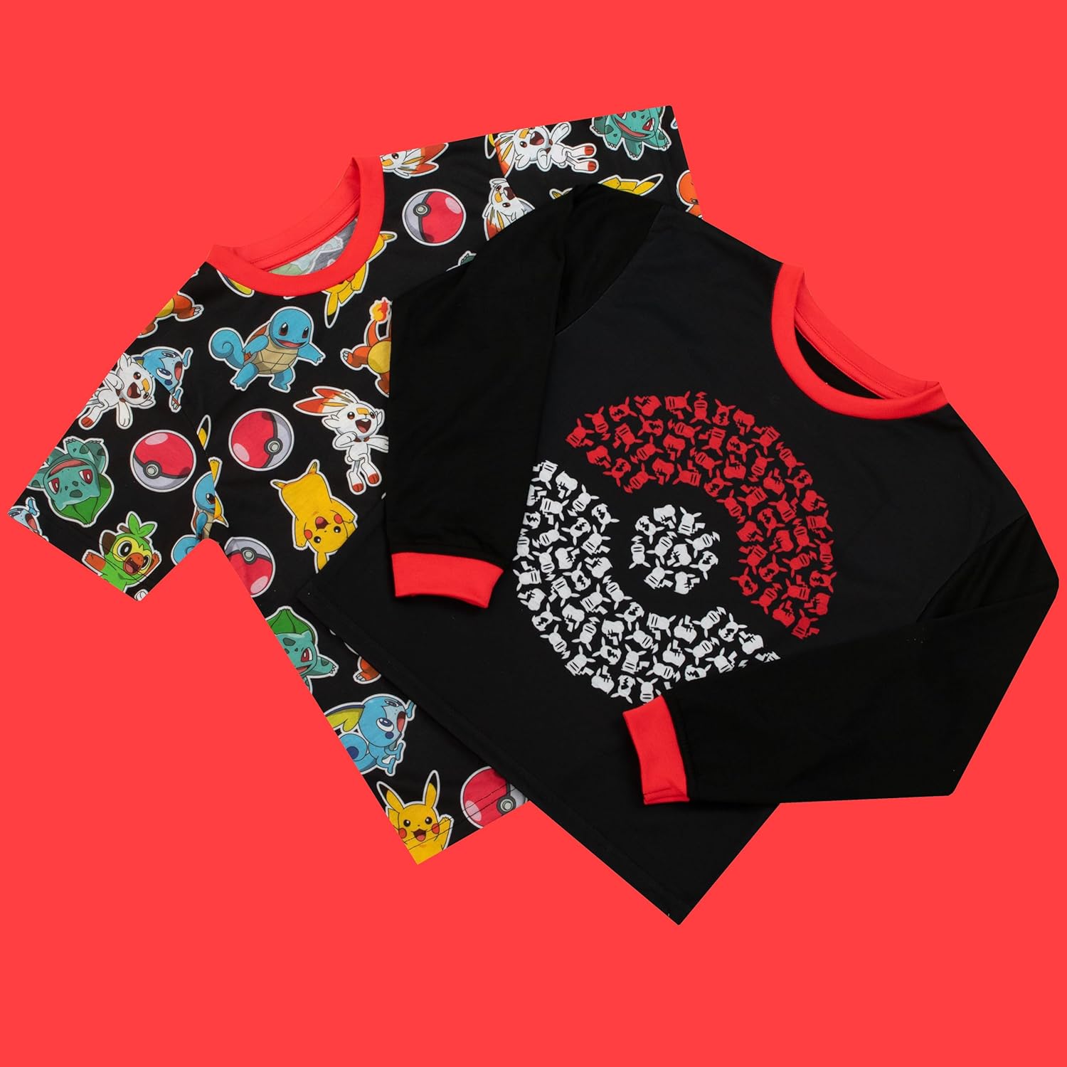 Embark on a nighttime adventure with our Boys Pokemon 2 Pack Pyjamas! Every kid's dressing gown might be their superhero cape by day, but by night, it’s all about diving into the world of Pokémon with our boys' pajama sets. The first of the twin set pajamas showcases a black long-sleeve top featuring a playful pokeball, uniquely composed of vivid Pikachu silhouettes. Accompanied by long, elasticated waist bottoms with cozy red-cuffed ankles, these pajamas combine style and comfort seamlessly. As the adventure continues, the second set comes alive with a vibrant medley of Pokémon - Pikachu, Charmander, Bulbasaur, Grookey, Sobble, and Scorbunny, all playfully positioned alongside pokeballs. The black short-sleeve top, matched with the lively print shorts featuring an elasticated waist, is a dream for those warmer nights or intense nighttime battles in the world of Pokémon Go. Crafted from 100% premium Polyester, these pajamas are not just another piece of pokemon clothing - they are a ticket to the vibrant world of Pokémon! As an officially licensed Pokemon product, authenticity is a guarantee. Hunting for the ultimate pokemon gift? Perhaps you've considered pokemon toys, pokemon games, or even a pokemon blanket. But nothing spells dreamy nights like our 2 pack of boys Pokemon pajamas. It’s the ideal present for birthdays, special occasions, or just to make bedtime the highlight of their day. Let the Pokémon adventures begin!