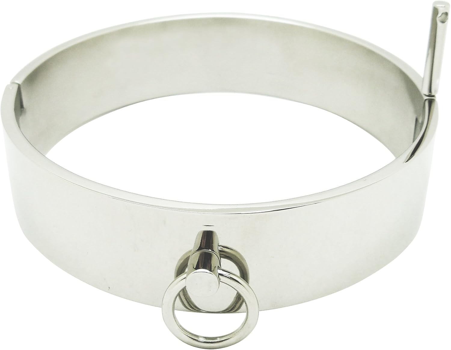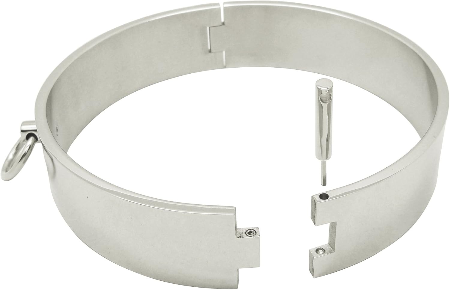 This collar was made in polished surface stainless steel handmade finished with an O-Ring at the front.The collar secures with a small hex screw that is integrated into the locking tab on the side opposite of the hinge. The collar locks when the hex screw is screwed into a small grove on the lower portion of the locking tab, thereby preventing the collar from opening. Please be extremely careful when closing the collar. The hinge has the potential to pinch as you are closing the collar. Actual internal diameter may vary by ~2mm (smaller or larger), as these are made by hand. If you are unsure on the size, we recommend ordering the larger of the two sizes. Internal diameter CHANGE to circumference are:11cm(circumference 34.5cm,13.6'' inches),12cm(circumference 37.6cm,14.8'' inches),13cm(circumference 40.8cm,16'' inches),14cm(circumference 43.9cm,17.3'' inches),15cm(circumference 47cm,18.5'' inches).