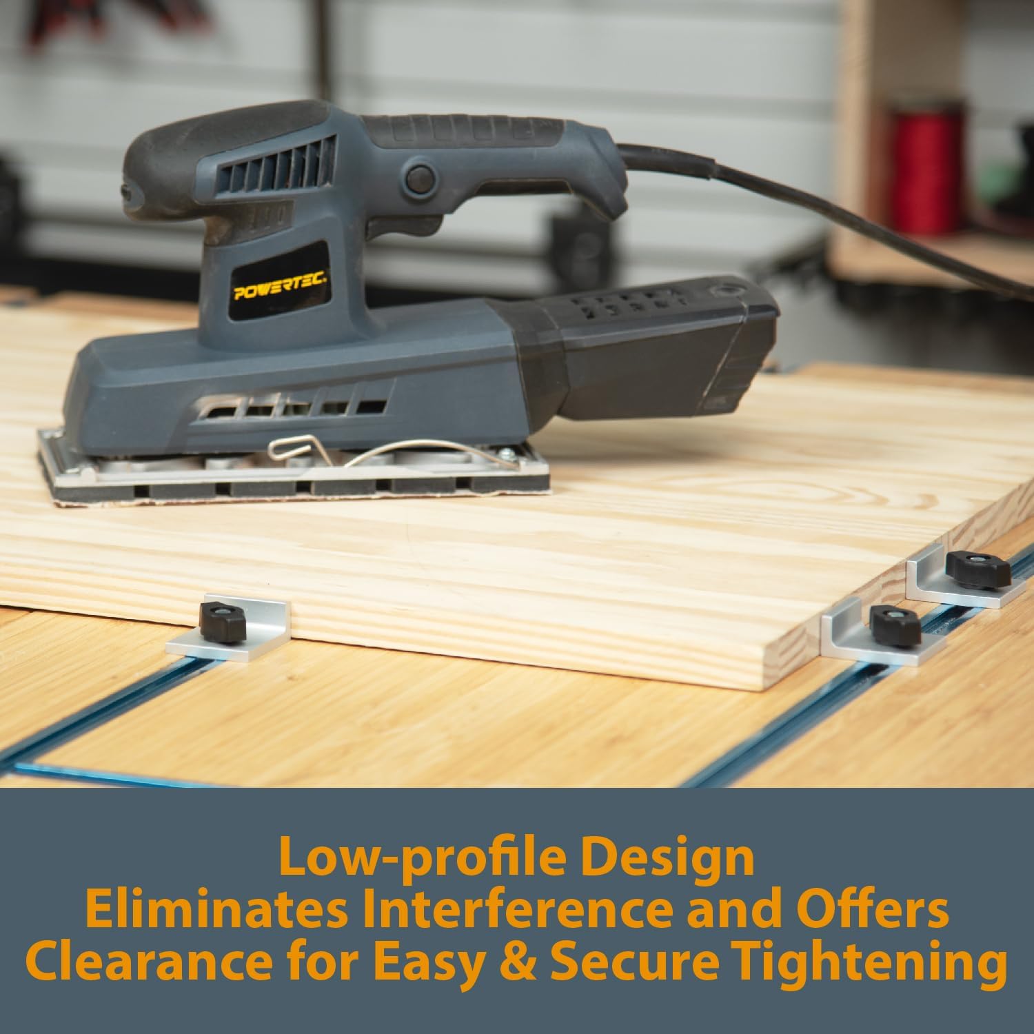 Introducing the Universal T-tracks & Stop Kit by POWERTEC.The Universal T-tracksThis versatile set of T-tracks was designed to help provide you with a limitless amount worktable configurations, while optimizing your jigs, fixtures and workbenches.It features a unique double-cut profile with an inside Groove that accepts standard 1/4 inch hex bolts, 1/4 inch T bolts and 5/16 inch T bolts.This makes it more cost effective and easier for you to maximize both, your new and previously owned hardware. Made out of extruded anodized aluminum, these commonly used woodworking accessories are build to last with outstanding durability and corrosion resistance.Whether you’re a professional or DIY enthusiast, you’ll find these to be the perfect workstation enhancing accessory.The Universal Stop KitThese tool-less stops are designed to provide you with a quick, precise and secure holding option for a wide assortment of stock and woodworking applications. This kit includes t-track stops for each direction. You can utilize the short stops on one end of your workpiece to hold it firmly in place while working, or the inline stops to secure and sandwich your stock for proper alignment no matter the angle. Ultimately, you'll find this stop kit to produce high precision results with optimal versatility.We Didn't Stop Short on Features:Includes wing knobs for optimal and secure tightening. They offer exceptional clearance that allow you to work with thin stock (as thin as 3/4 inches), and/or can help reduce interference of tools when hand planing, belt sanding or scraping dried glue.Made with extruded aluminum for high quality strength and long term durability. Also possesses a premium anodized silver finish for optimal corrosion resistance.Commonly Used ApplicationsCNC MachiningLite Board ClampingHand Planing and SandingT-Track Jigs and Fixture ConfigurationsKit Contains:2 Parallel (Short) Stop [1-5/8" x 1-1/2"]2 Perpendicular (Inline) Stops [1-5/8" x 1-1/2"]4 Wing Knobs (Black)4 T-Bolts [1/4"-20 x 3/4" long]NOTE: This item is designed to work with Universal or Double Cut T-Track, which has a 23/64” wide top slot.andnbsp; It will not fit Mini or ¼” T-Track which has a top slot ¼” wide. Please verify the size of your T-Track before ordering.POWERTEC is a manufacturer of high quality woodworking tools and accessories, machines, and an assortment of OEM replacement parts. We are committed to exceeding expectations, while bringing the latest innovations, technology, and product development to the industry.