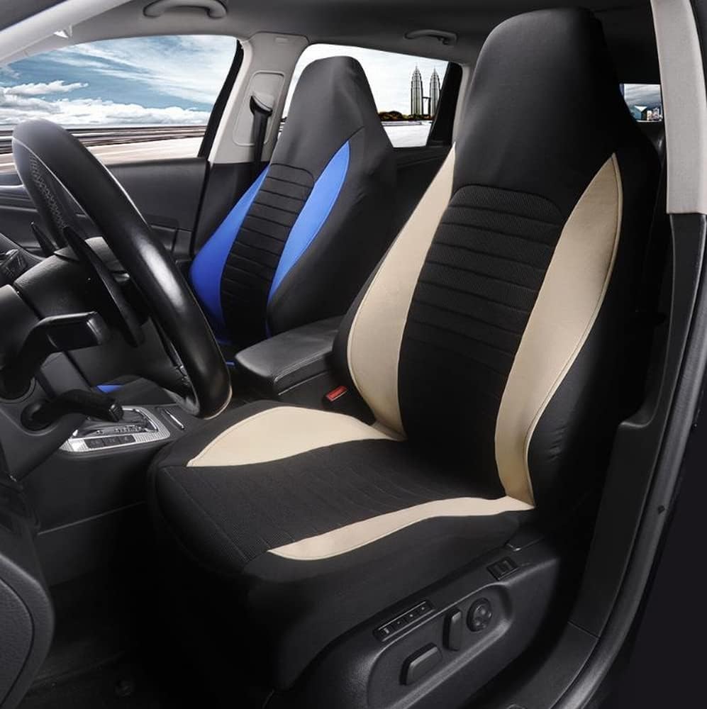 Leather, cloth, cotton, PU, sheepskin which is the best material for a seat cover?Leather and PU seat covers may be durable, but they are too stiff and uncomfortable, and cotton and sheepskin seat covers are warm but only suitable for winter. So cloth car seat cover is your best choice, it is soft, lightweight, lasting sweat absorption, and can prevent bare legs from being scalded by leather seats in summer, many people will have such troubles in hot weather.Specification:Material: ClothColor: Red / Blue / Beige / GreyHeadrest length:11.81" (30cm)Front seat back cover height:31.10"(79cm) Front seat cushion cover width:22.44"(57cm)Front seat cushion cover height:22.47"(52cm) Package size: 12 * 7 * 3inPackage weight: 560g / 1.2lbPackage List:2 x Front high back bucket CoversSuitable for most car seats on the market, and can be used in all seasons, making your car look brand new. The seat cover fabric is breathable, feels comfortable, stain-resistant, wear-resistant, easy to clean, does not fall off, not too hot in summer and not too cold in winter, and is a universal seat cover for all seasons. So please rest assured to purchase, give you a pleasant driving experience.