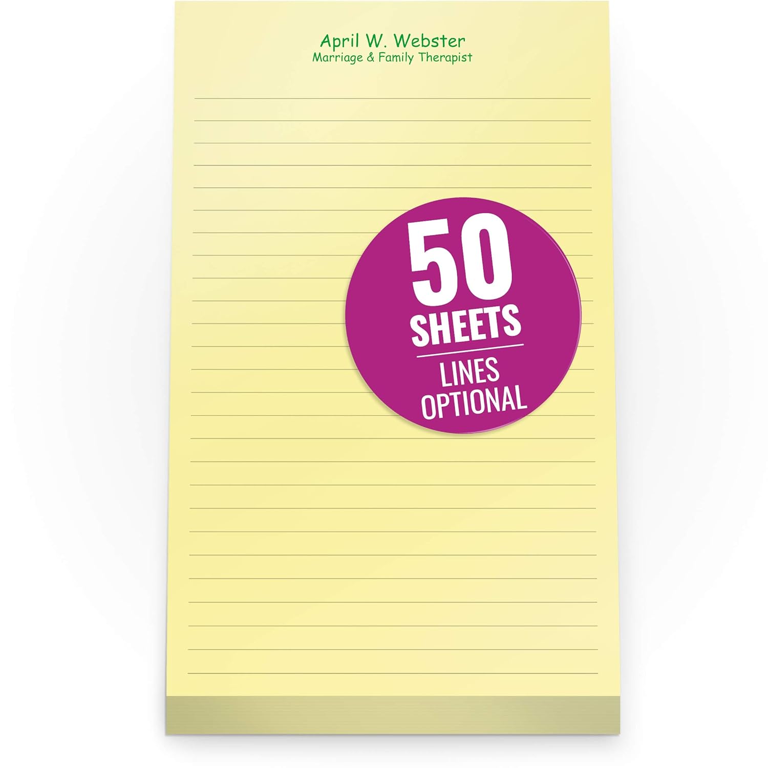Personalize your own custom notepad with your company name and message. Our custom notepads are a great way to promote your business in the workplace, at conferences and trade shows. Personalized Notepads are popular in the medical-field, universities, schools, conventions and more. Write down a quick reminder, make a list of tasks for the day or take notes. Our 50-sheet notepads offer customization options on the top portion of the note. Add your company name, slogan, title and or other important business details. PrintPPS has over 19 years of experience and is the largest manufacturer of custom notepads in the USA. Our superior quality and fast-turnarounds supports over 40,000 customers annually for personal and business stationery. PrintPPS showcases our “Service Is Everything” tradition by providing a high-quality product coupled with unbeatable service at a low price. Read more