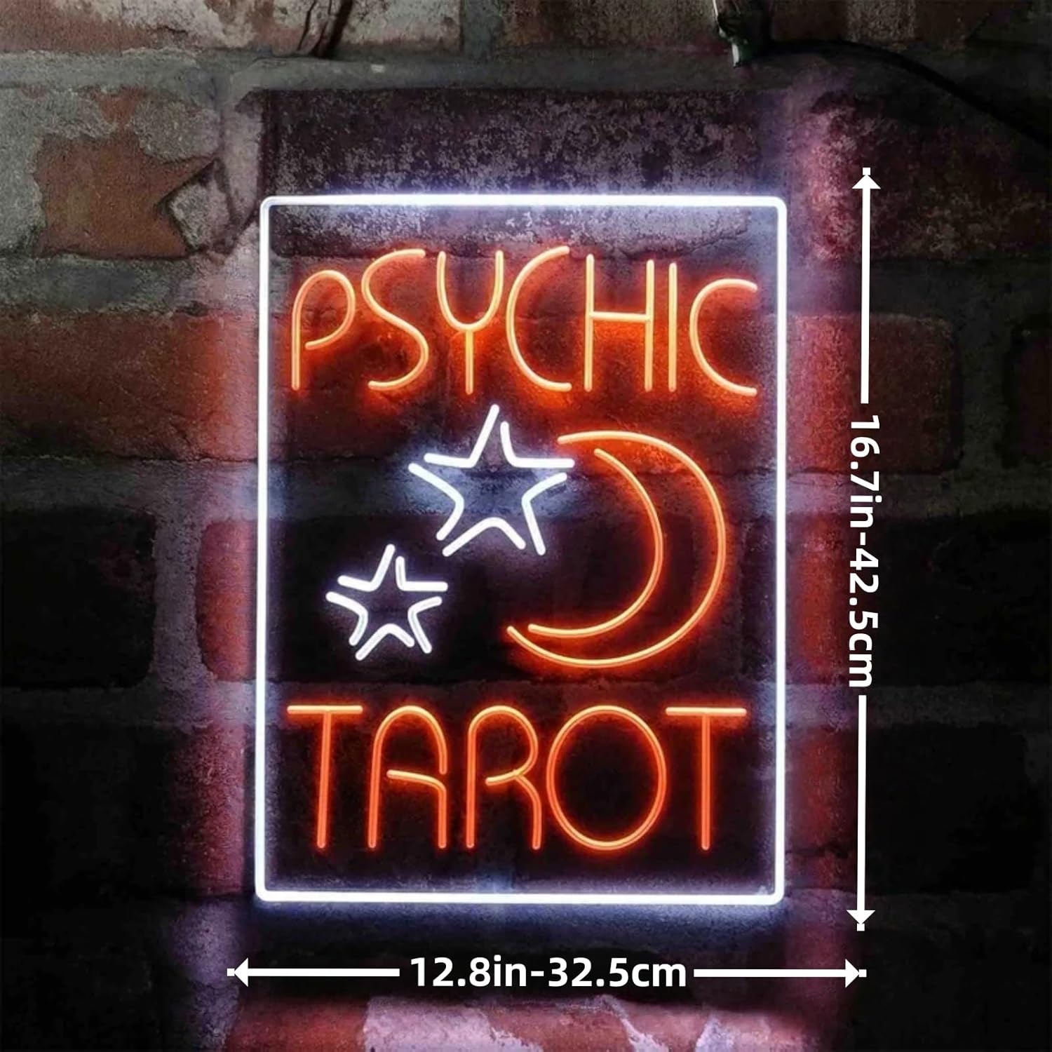 (Detailed Description): Authentic Esoteric Aesthetic: Glowing moon phases and arcane font channel authentic mystic energy Conversation Catalyst: Guaranteed to intrigue clients and visitors alike Perfect for psychic booths, witchcraft shops, or crystal store displays. Home Sanctuary: Creates ambiance in meditation rooms, altar spaces, or witchy bedrooms. (Suitable for): Professional psychics Wiccan altars Gothic home decor Gift for astrology lovers (Specifications): Material: High-quality silicone LED neon + acrylic backing Customizable Colors Power Supply: USB (What’s Included): 1x Psychic Tarot Moon Stars Neon Sign 1x Hanging Kit (hooks & screws) Mingxigo specializes in neon lights and is committed to providing high-quality products and services.